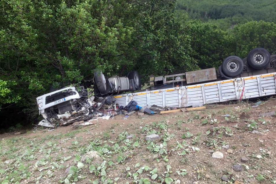 Edinilen bilgiye göre Erzincan’dan Rize’ye kurbanlık büyükbaş hayvan götürmek üzere yola çıkan ve İsmail Bektaş yönetimindeki 24 AAN 962 plakalı tır Pöske dağı mevkiinde sürücüsünün direksiyon hakimiyetini kaybetmesi sonucu kontrolden çıkarak şarampole yuvarlandı.