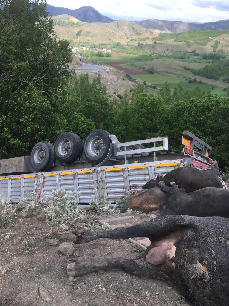 Gümüşhane’nin Kelkit ilçesinde kurbanlık hayvanları taşıyan tır kaza yaptı. Kazada sürücü hayatını kaybederken, çok sayıda büyükbaş hayvan telef oldu.