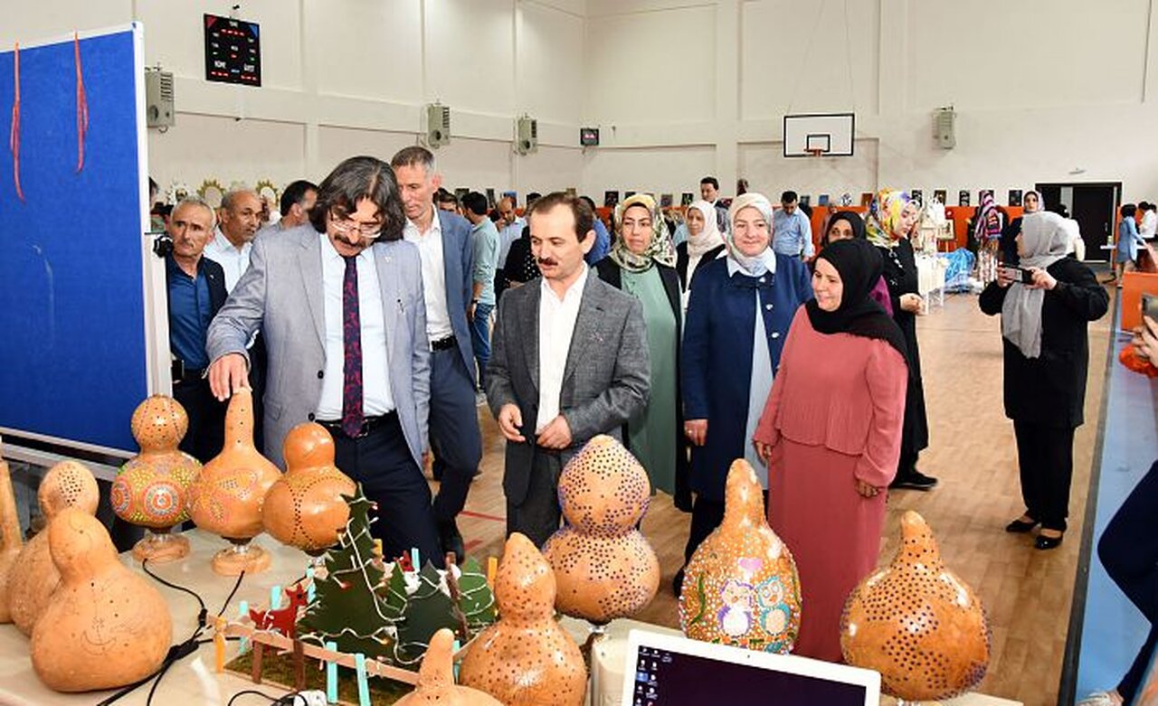 Birbirinden güzel el emeği göz nuru el işlerinin sergilendiği sergide protokol üyeleri sergiyi gezerek el emeği göz nuru ürünler hakkında bilgiler aldı.