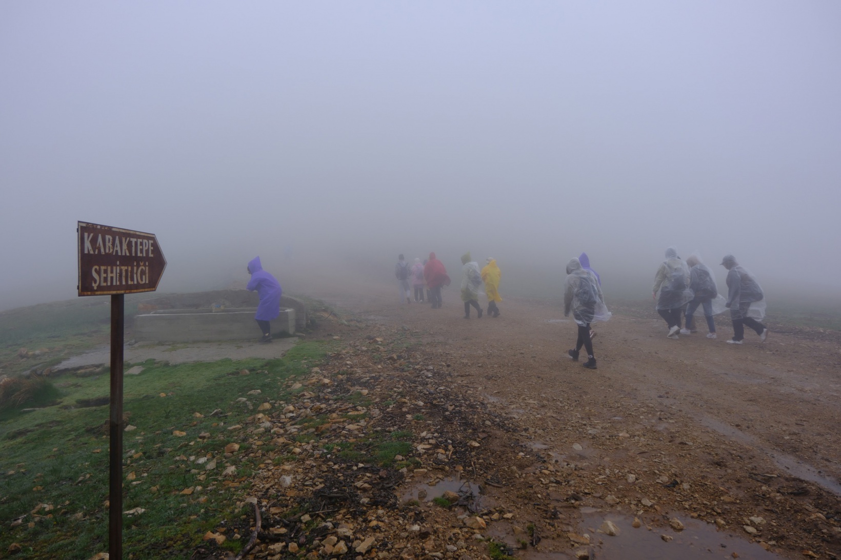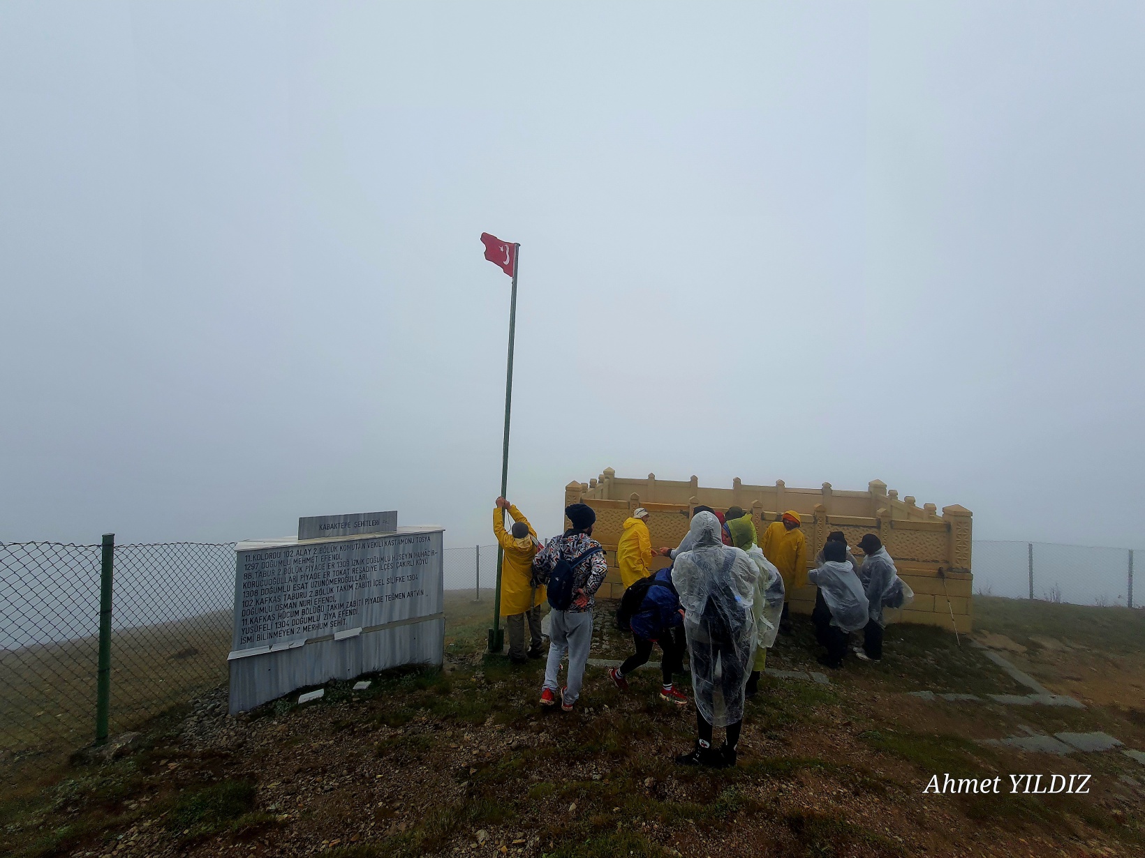 Yoğun sis altında gerçekleşen yürüyüşte sporcular 1918 yılının Şubat ayında Torul ilçesi istikametinde ilerleyen Rus birliklerinin bölgeyi her alanda kontrol altında tutan hakim nokta olan 2 bin 308 rakımlı Kabaktepe zirvesi üzerinde kurduğu ordugaha baskın yaparak Rus birliklerinin Gümüşhane’den çekilmeye başlamasına sebep olan ve bu noktada şehit olan Tosyalı Mehmet Yüzbaşı ve 6 askerinin meftun olduğu Kabaktepe şehitliğinde önce dua etti sonra şehitlikteki bayrağı yanlarında getirdikleri bayrakla değiştirdi.