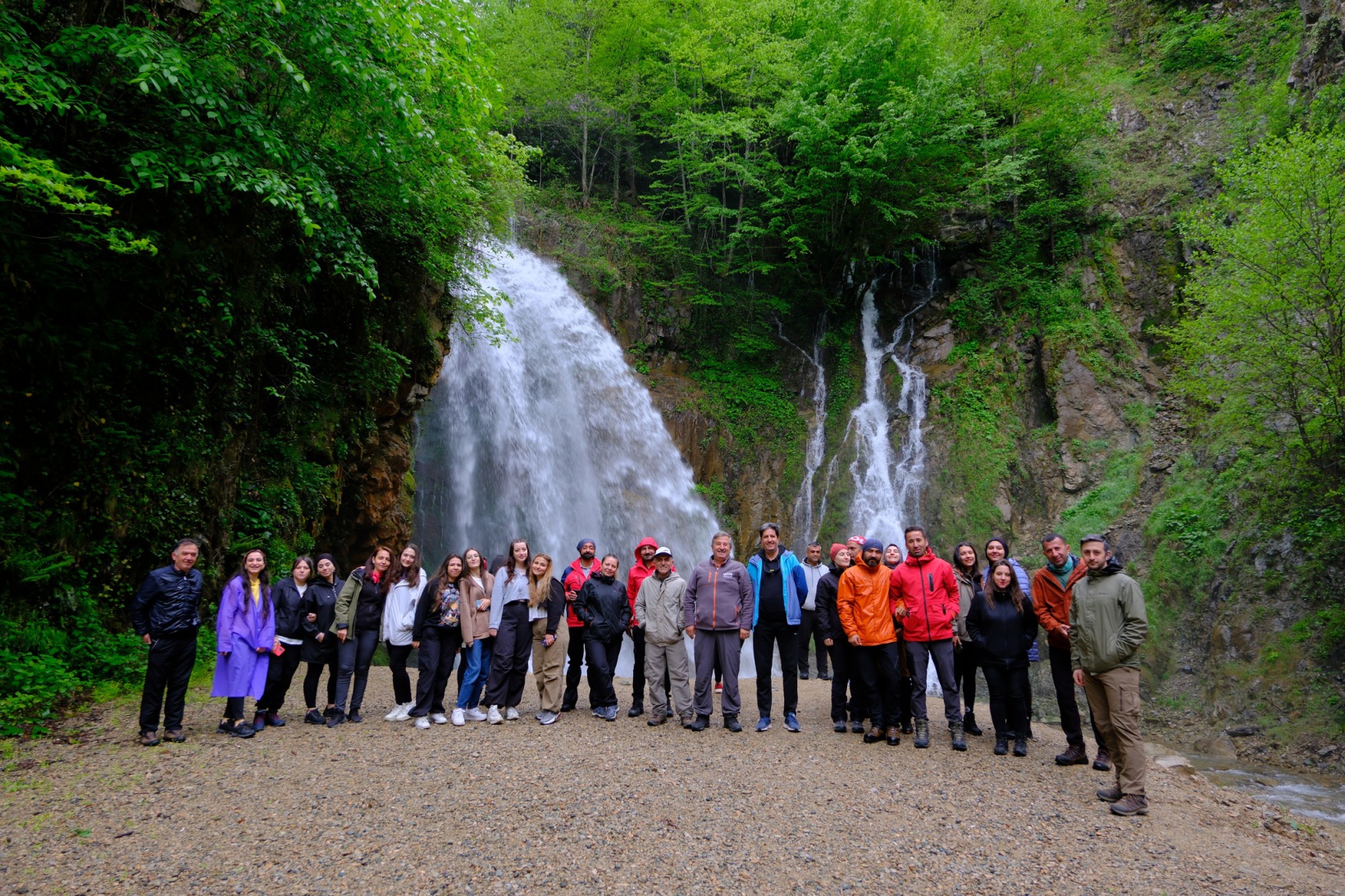Çiçeklerin açmaya başlamasına karşın yükseklerde kar kütlelerinin olduğu Kürtün ilçesinde Anadolu’nun farklı şehirlerinden gelen farklı meslek gruplarından 39 kişinin katılımıyla büyüleyici güzelliğiyle göz kamaştıran Çağlayandibi Şelalesine uğrayan heyet daha sonra dünyaca ünlü Güvende Yaylasından yürüyüşe başladı.