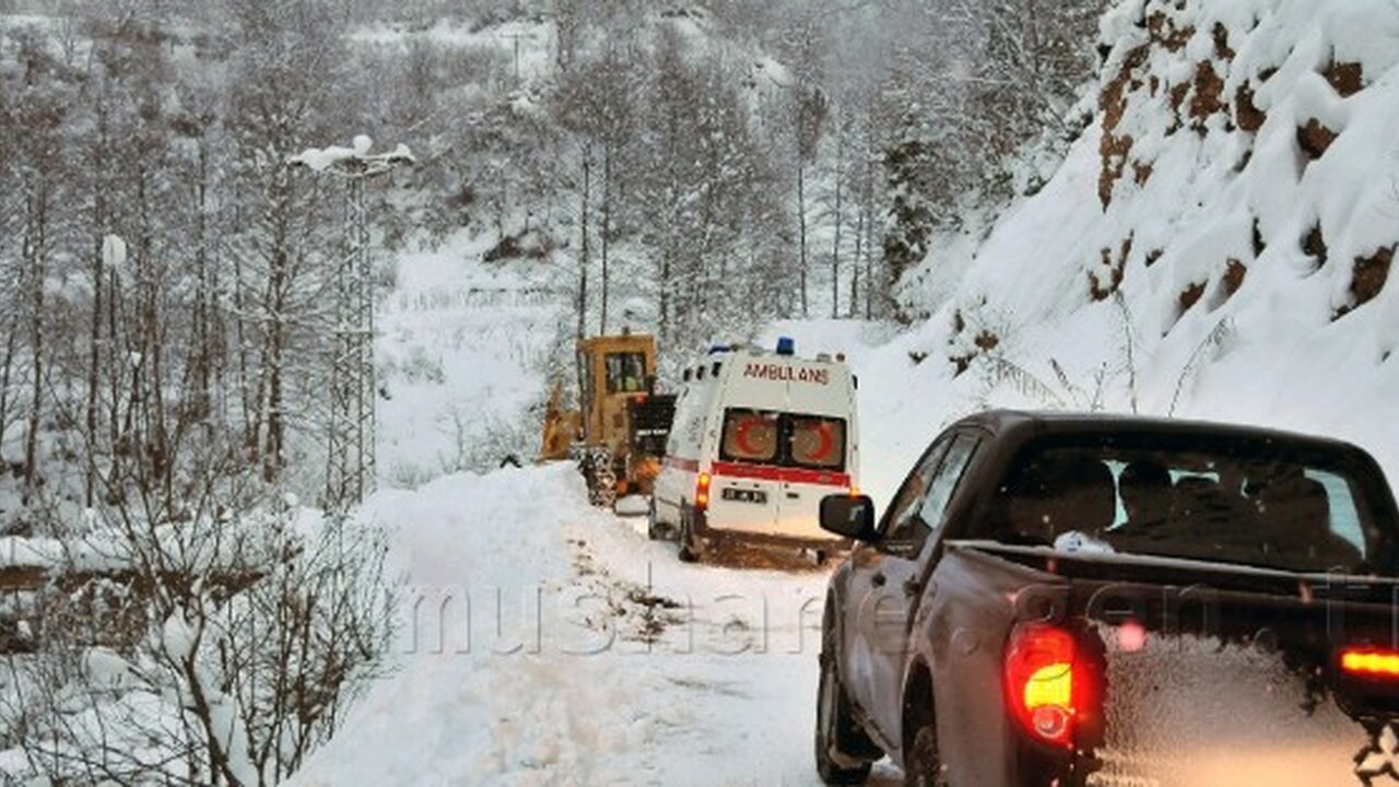Köyde 77 yaşında felçli bir hasta olduğu bilgisini alan 112 Acil Servis ekibine bağlı bir ambulans, köye gitmek için bir gün önce açılan yolun gece yağan karla kapanması sonucu yolda kaldı.