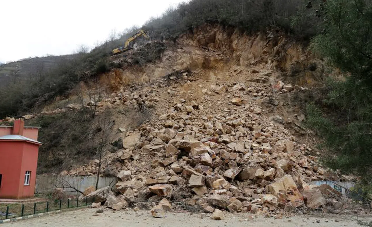 İlçeye bağlı Üçtaş köyünde dağdan kopan kayaların bahçesine düştüğü 166 öğrencinin bulunduğu pansiyonlu Yatılı Bölge Orta Okulu ve İlkokulunun tatil edilmesinin ardından uzman ekiplerden oluşturulan komisyonun aldığı kararlarla birlikte bölgede İl Özel İdaresi ekipleri ve iş makineleri tarafından askıda kalan kayaların düşürülmesi çalışması gerçekleştiriliyor.
