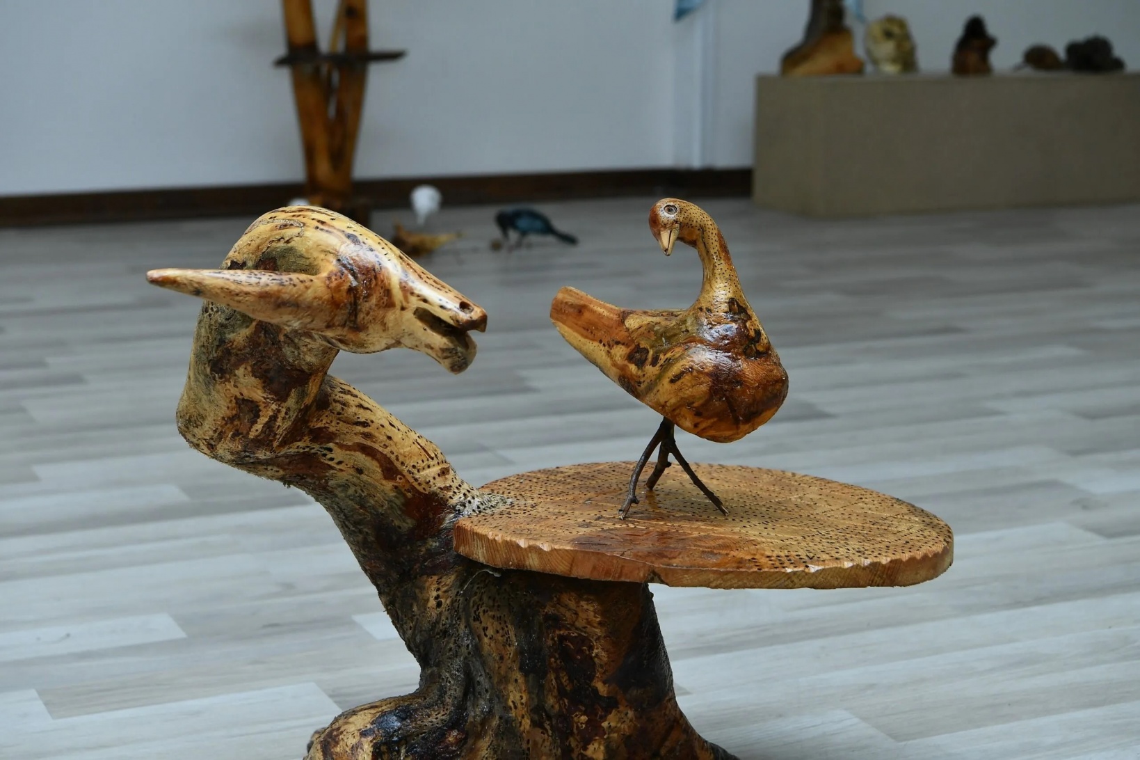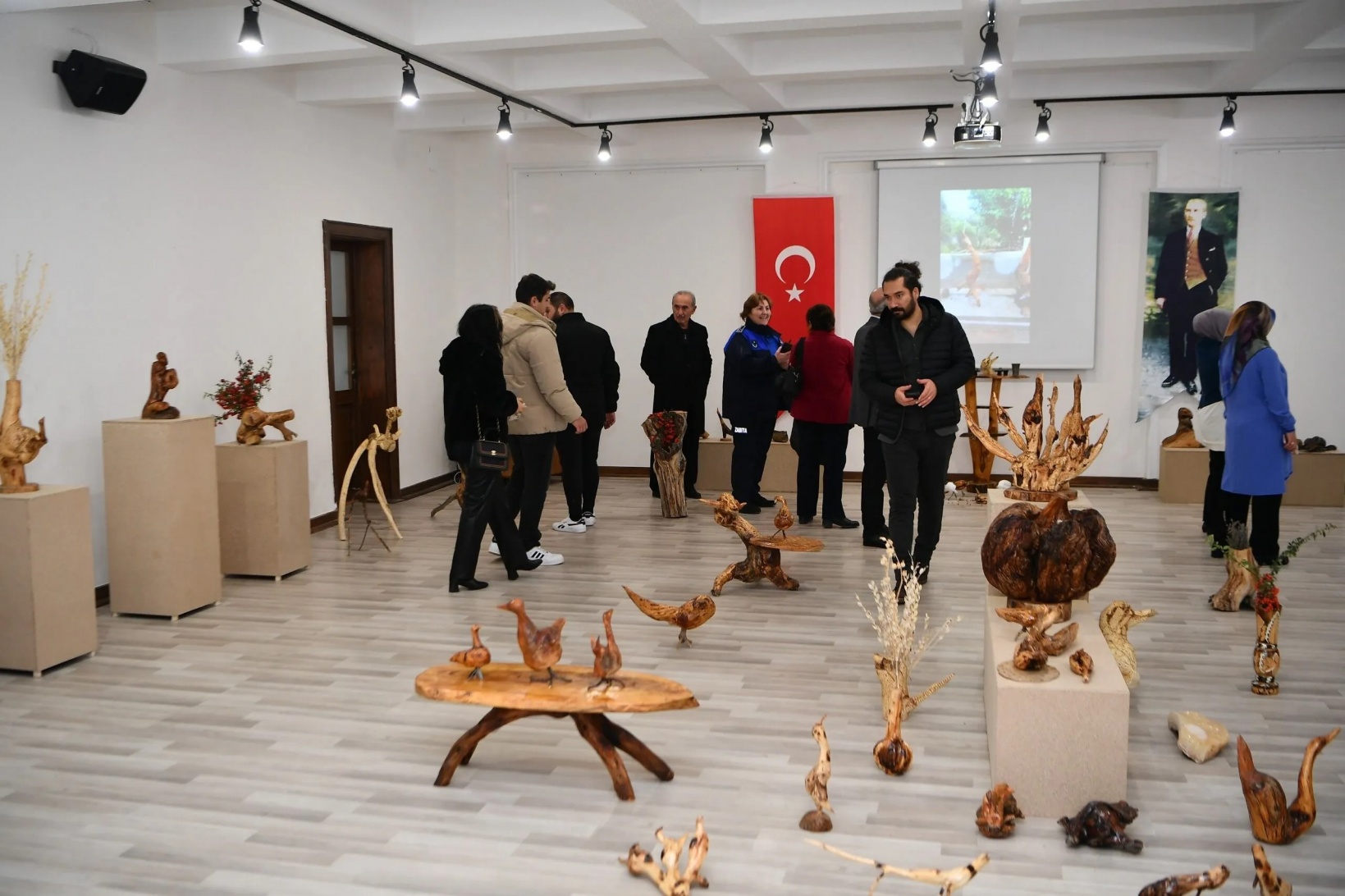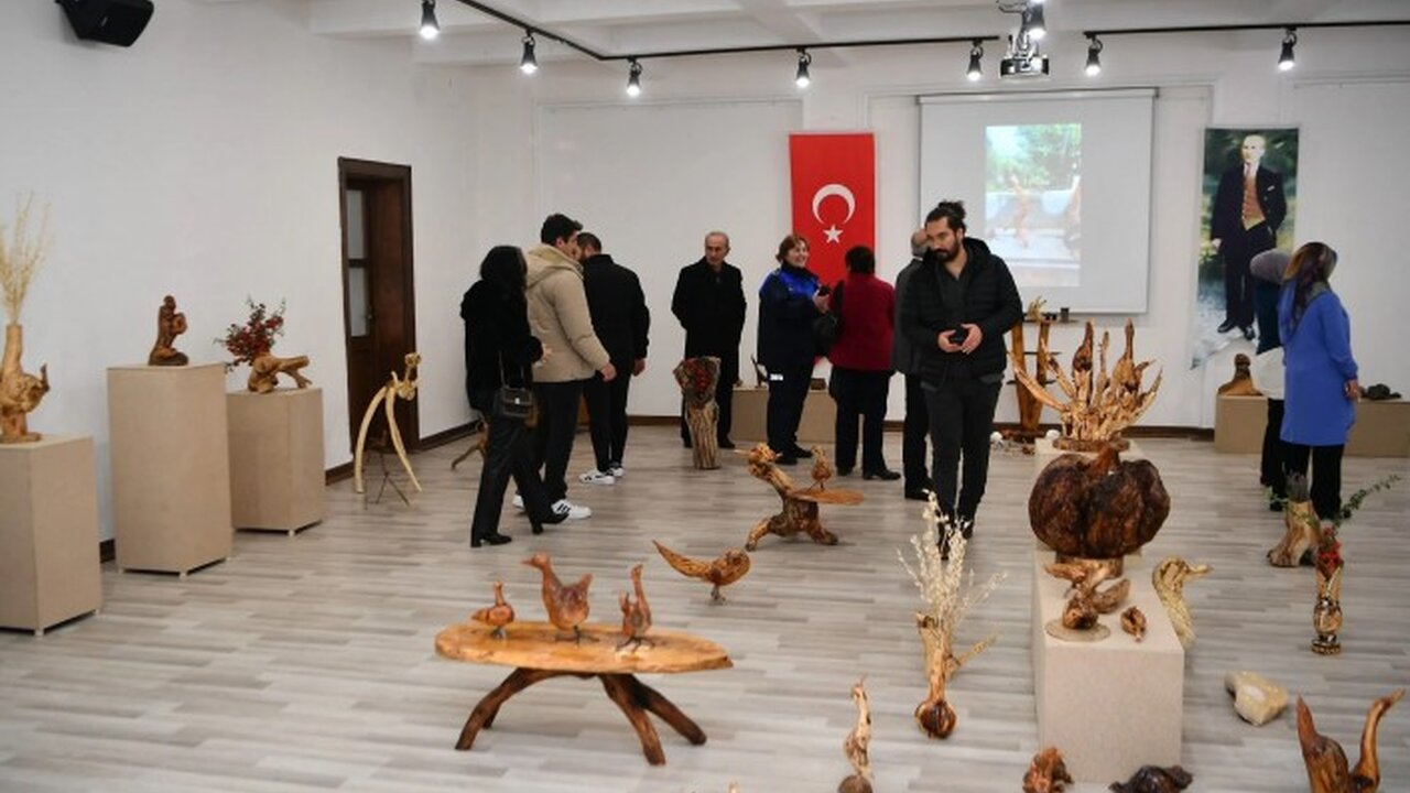 Doğayı koruma bilincini sanatla birleştirerek hem çevreye hem de sanata katkı sağlayan, bıçak, törpü, testere ve keser kullanarak tamamen doğal malzemelerle eserlerini oluşturan Kara’nın sergisi, bir hafta boyunca ziyaret edilebilecek.