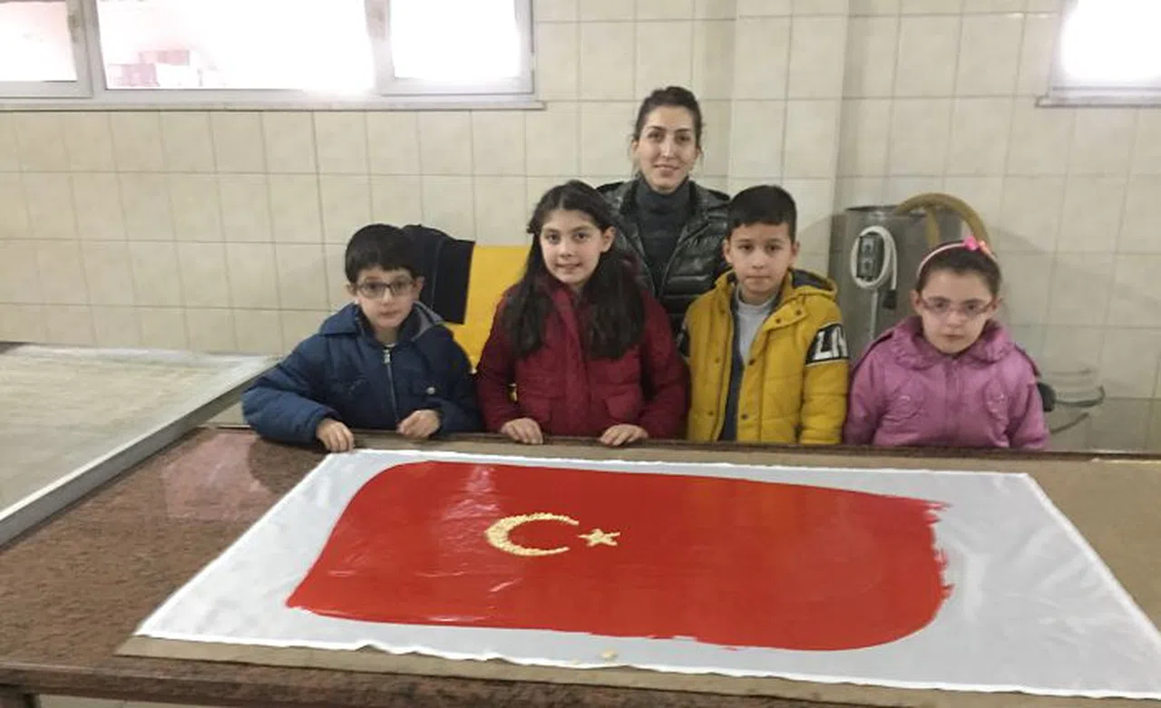 Fevzipaşa İlkokulu 4/C sınıfı öğretmeni Filiz Alemdağ ve öğrencileri ‘81 İlde Şanlı Bayrağımız’ adlı eTwinning projesi kapsamında Gümüşhane’yi temsilen kuşburnu pestilinden Türk bayrağı tasarladı.