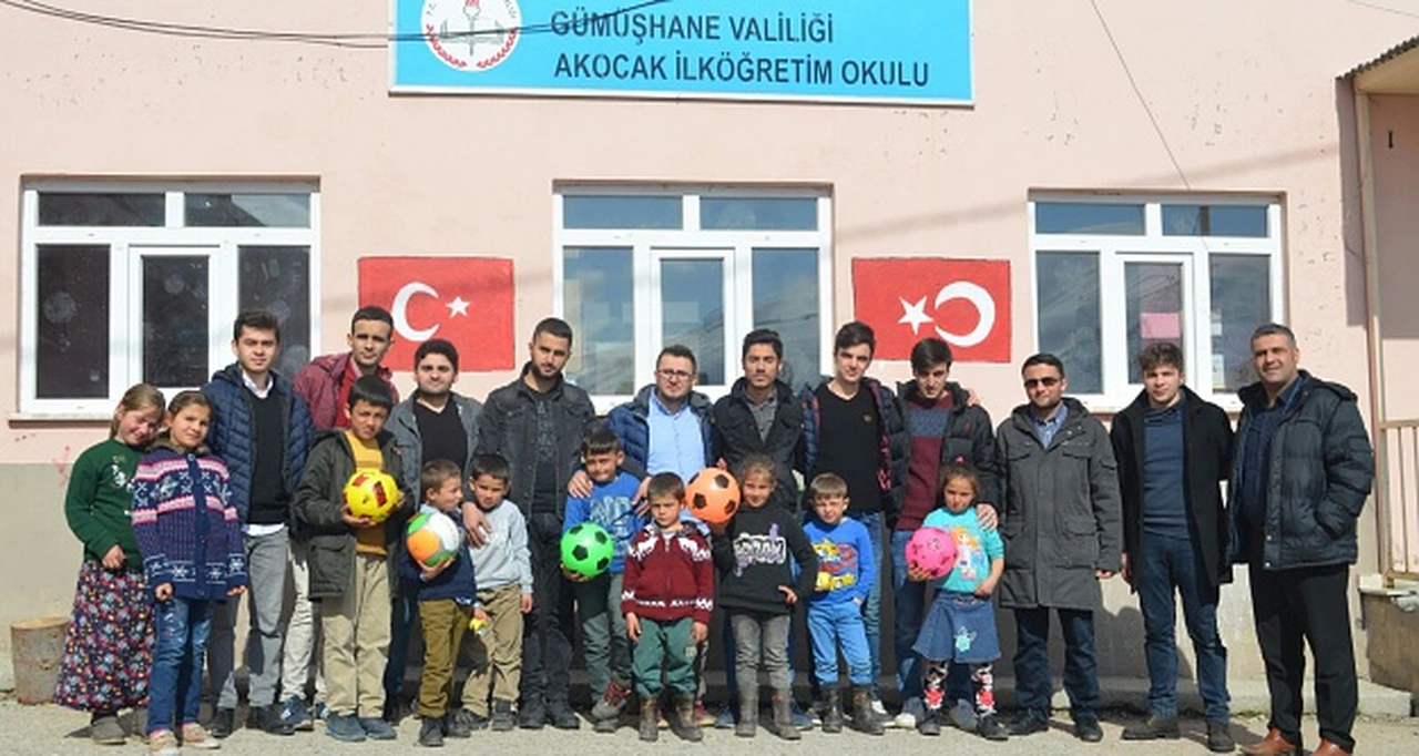 Gümüşhane Kredi Yurtlar Kurumu (KYK) Ahmet Ziyaüddin Yurdu personelleri ve öğrencileri, gönül bağı etkinlikleri kapsamında yurtta kalan üniversite öğrencileriyle birlikte Gümüşhane Merkeze bağlı Akocak Köyünde bulunan ilkokul öğrencilerini ziyaret etti.