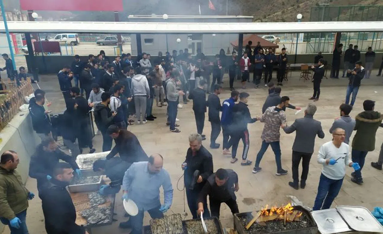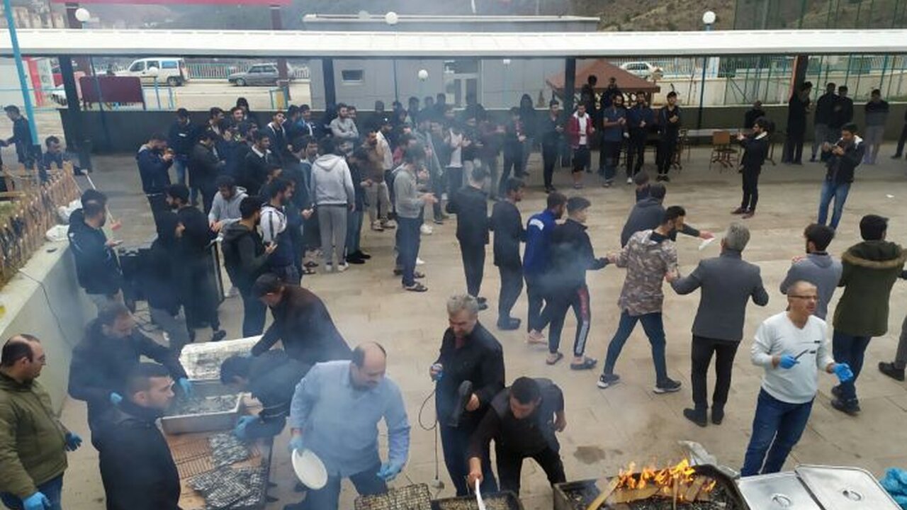 Yaklaşık 600 öğrencinin katıldığı hamsi şenliğinde 80 kilo hamsi mangal ateşinde pişirilerek öğrencilere dağıtıldı.