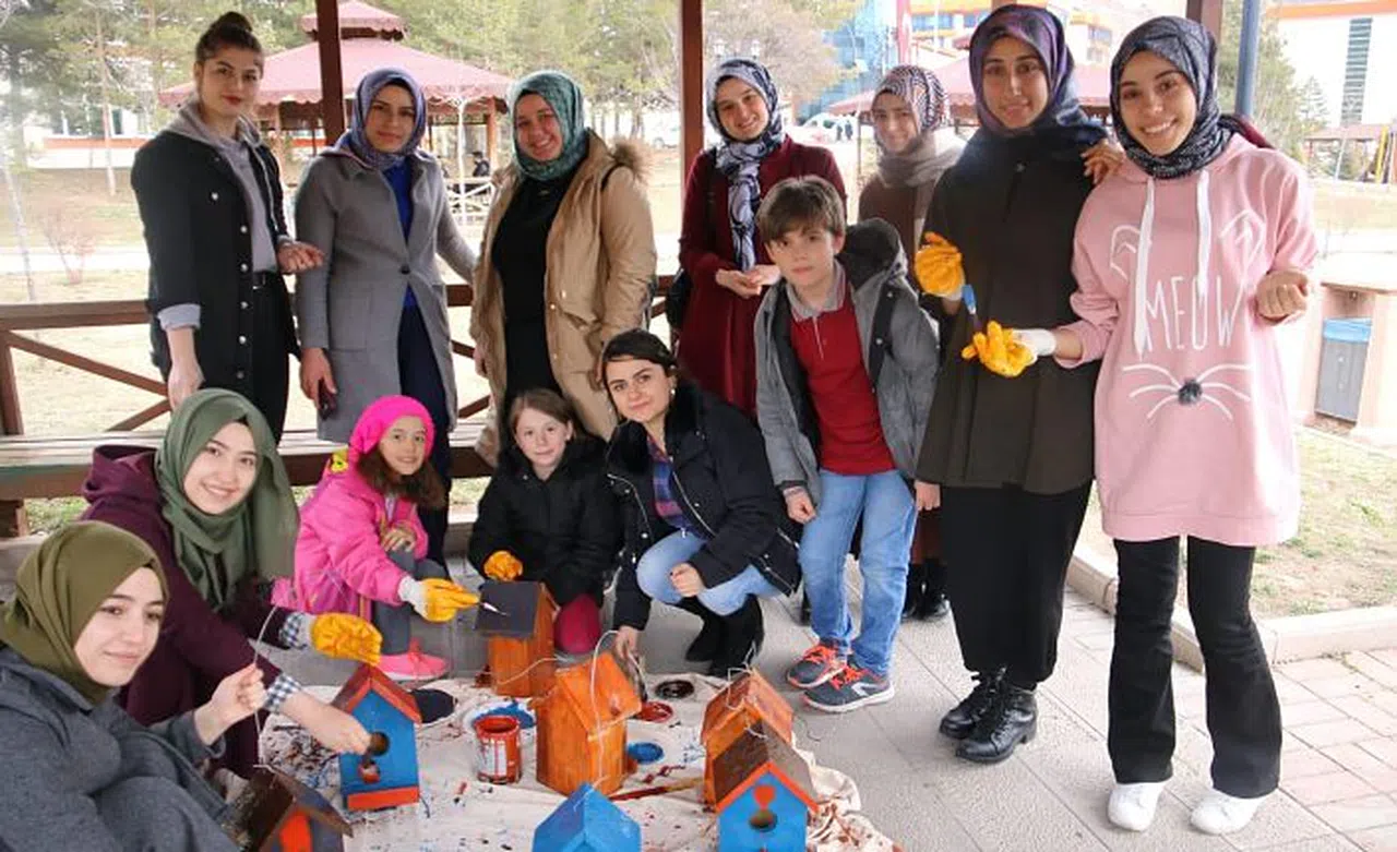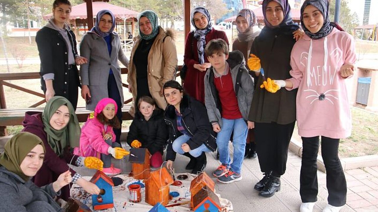 Gümüşhane Gençlik ve Spor İl Müdürlüğüne bağlı Gümüşhane Yurdunda barınan üniversite öğrencileri havaların soğumasıyla birlikte kuşların soğuktan korunmaları için ilkokul öğrencileri ile kuş evleri tasarlayıp yurt bahçelerine astı.