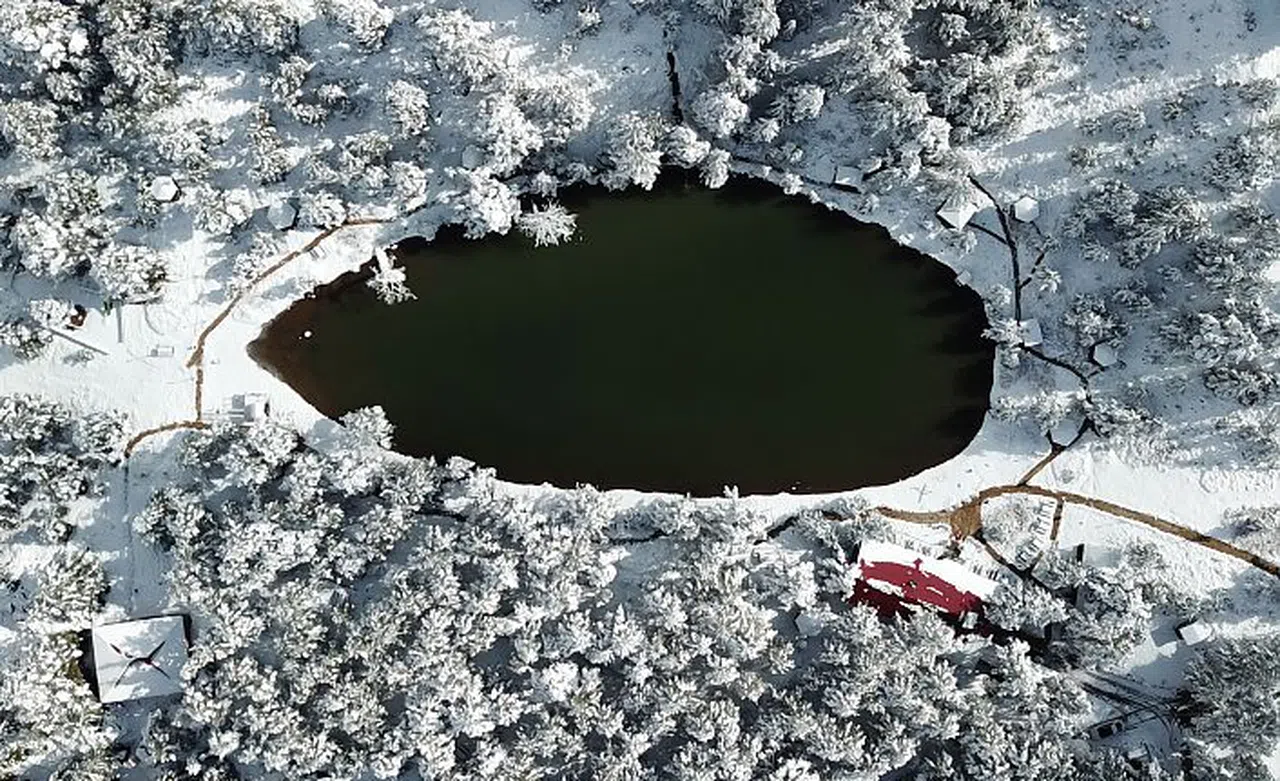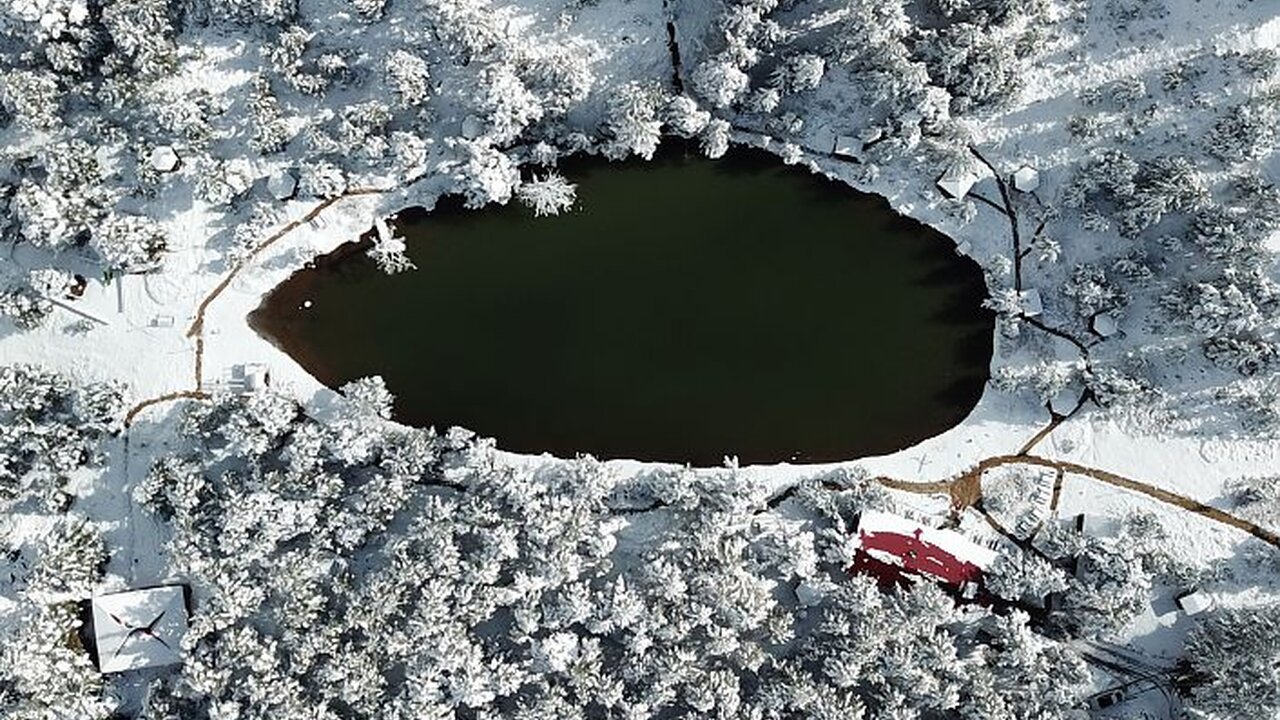 Gümüşhane’nin Torul ilçesine bağlı Zigana köyü sınırlarında bulunan Limni Gölü Tabiat Parkında ziyaretçi sayısı 200 bini aştı. Önceki gün gerçekleşen kar yağışının ardından beyaza bürünen ve eşsiz güzelliklerin ortaya çıktığı bölge havadan görüntülendi.