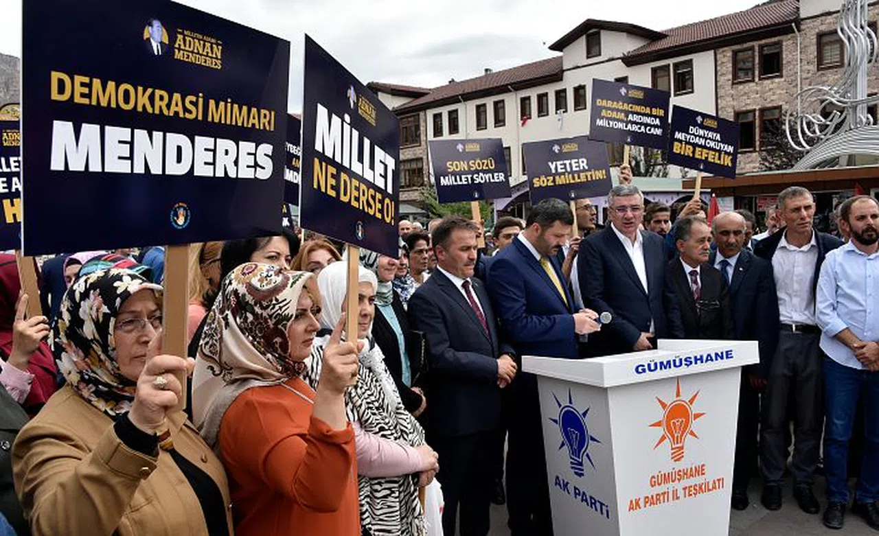 Darbeciler tarafından 57 yıl önce idam edilen merhum Başbakan Adnan Menderes, çalışma arkadaşları Dışişleri Bakanı Fatih Rüştü Zorlu ve Maliye Bakanı Hasan Polatkan Gümüşhane’de düzenlenen törenle anılarak, idamlarına basın açıklamasıyla tepki gösterildi.