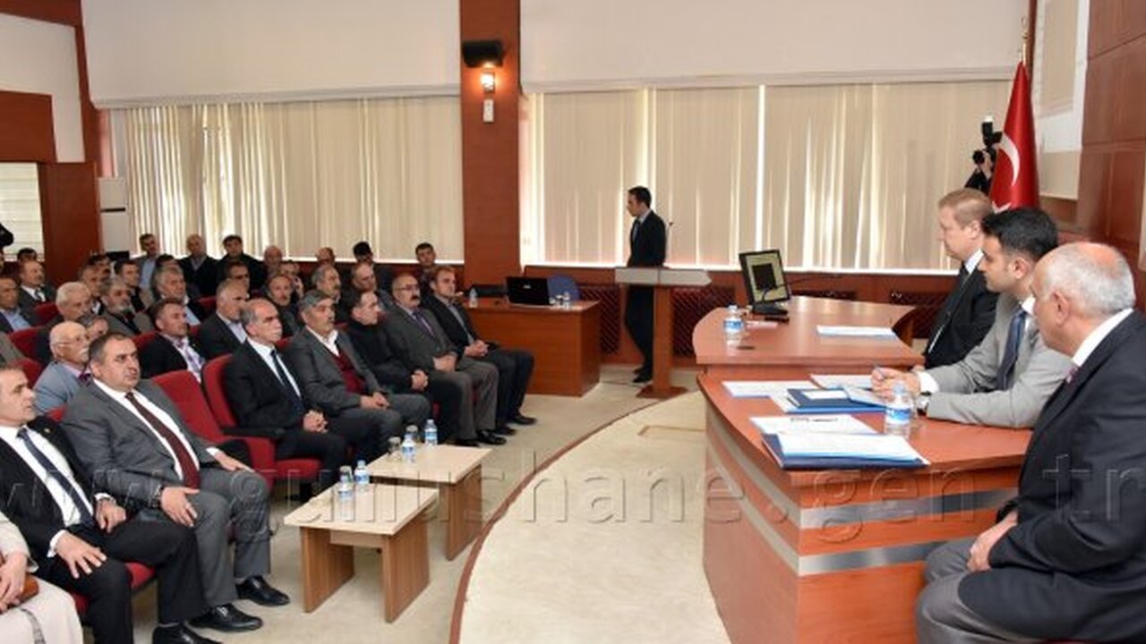 Valilik Toplantı Salonunda düzenlenen toplantıya Vali Yardımcısı İsmail Özkan, İl Genel Meclisi Başkanı Şerif Bayraktar ve İl Genel Meclisi üyeleri Zülfikar Bal ile Mustafa Adil Gürses ve merkeze ilçeye bağlı 93 köy muhtarının tamamı katıldı.