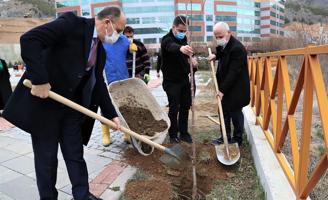 Ağaç dikme etkinliğine katılan Rektör Prof. Dr. Halil İbrahim Zeybek ise dikim alanında Rektör Yarımcısı Prof. Dr. Bayram Nazır’la birlikte fidanların dikiminde yardımcı oldu.