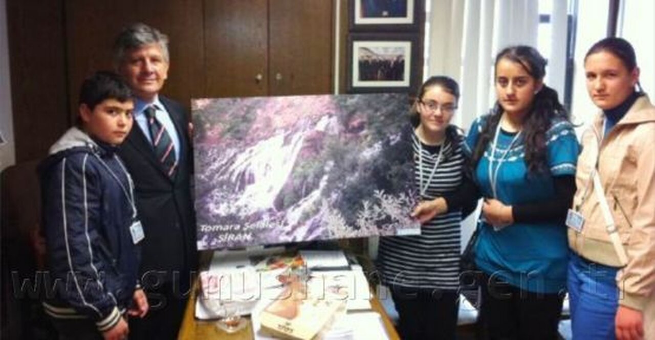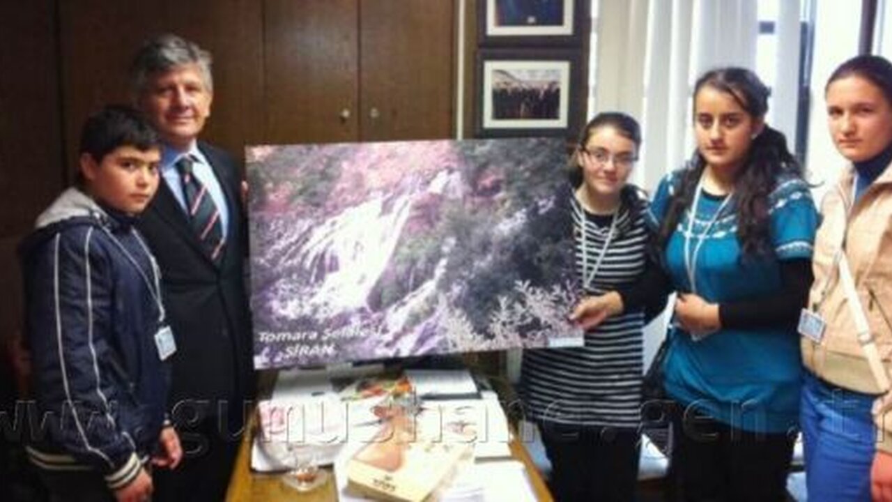 TBMM ziyaretlerinin son durağında Doç. Dr. Kemalettin Aydın’ın TBMM’de ki çalışma odasına geçen öğrenciler yanlarında getirdikleri Tomara Şelalesi fotoğrafını AK Parti Gümüşhane Milletvekili Doç. Dr. Kemalettin Aydın’a hediye ettiler.