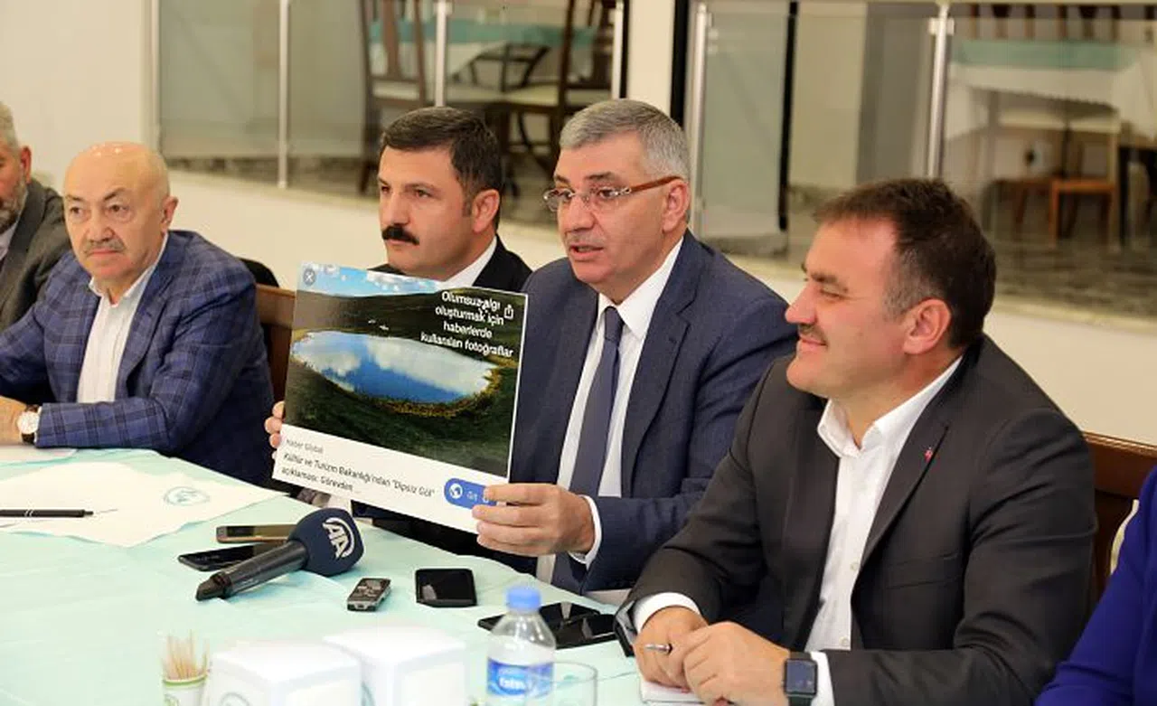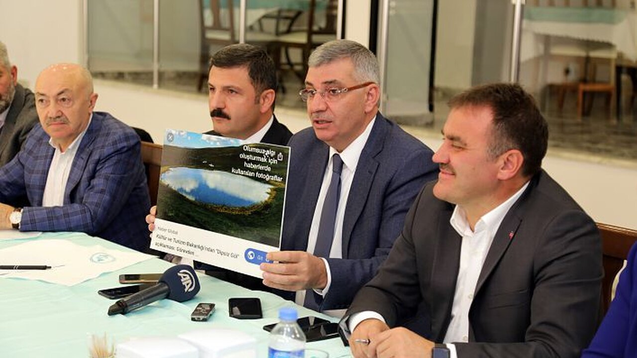 AK Parti Gümüşhane Milletvekili Cihan Pektaş ise çok sayıda televizyon kanalı ve sosyal medyada paylaşılan Dipsiz Göl fotoğraflarının bahse konu Dipsiz Göl olmadığını yanında getirdiği fotoğrafları göstererek anlattı.