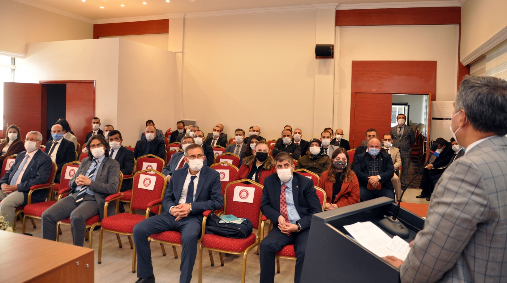 İl Milli Eğitim Müdürü Seydi Doğan başkanlığında Müdür Yardımcıları Mesut Olgun ve Musa Uncu, Şube Müdürleri Onur Aydın, İlyas Günay, Selahattin Yüzgeç, Oltan Balyemez ve okul müdürlerinin katılımı ile gerçekleştirilen toplantıda Covid-19 pandemi sürecinde geçen 2019-2020 eğitim öğretim yılı ile 2020-2021 eğitim öğretim yılının ilk ara tatil dönemine kadar geçen sürecin değerlendirilmesi yapıldı.