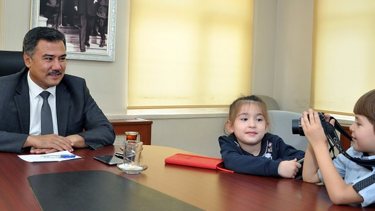 Minik öğrencilerin İl Milli Eğitim Müdürü Seydi Doğan ile yaptıkları röportaj