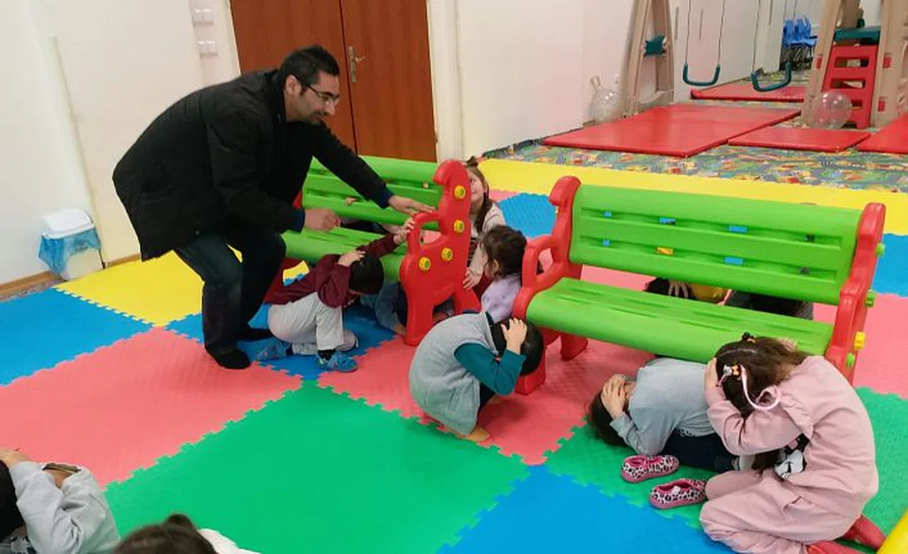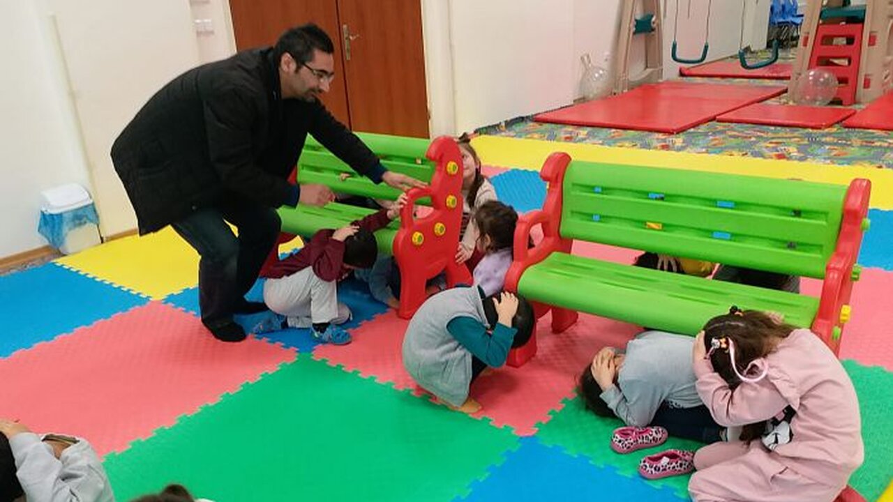 Deprem gibi doğal afetlerle ilgili farkındalık oluşturmak amacıyla çocuklara Üniversite Sivil Savunma Uzmanı Engin Demir tarafından depremle ilgili genel bilgiler verildikten sonra, deprem sırasındaki doğru davranış şekilleriyle ilgili tatbikatlar düzenlendi.