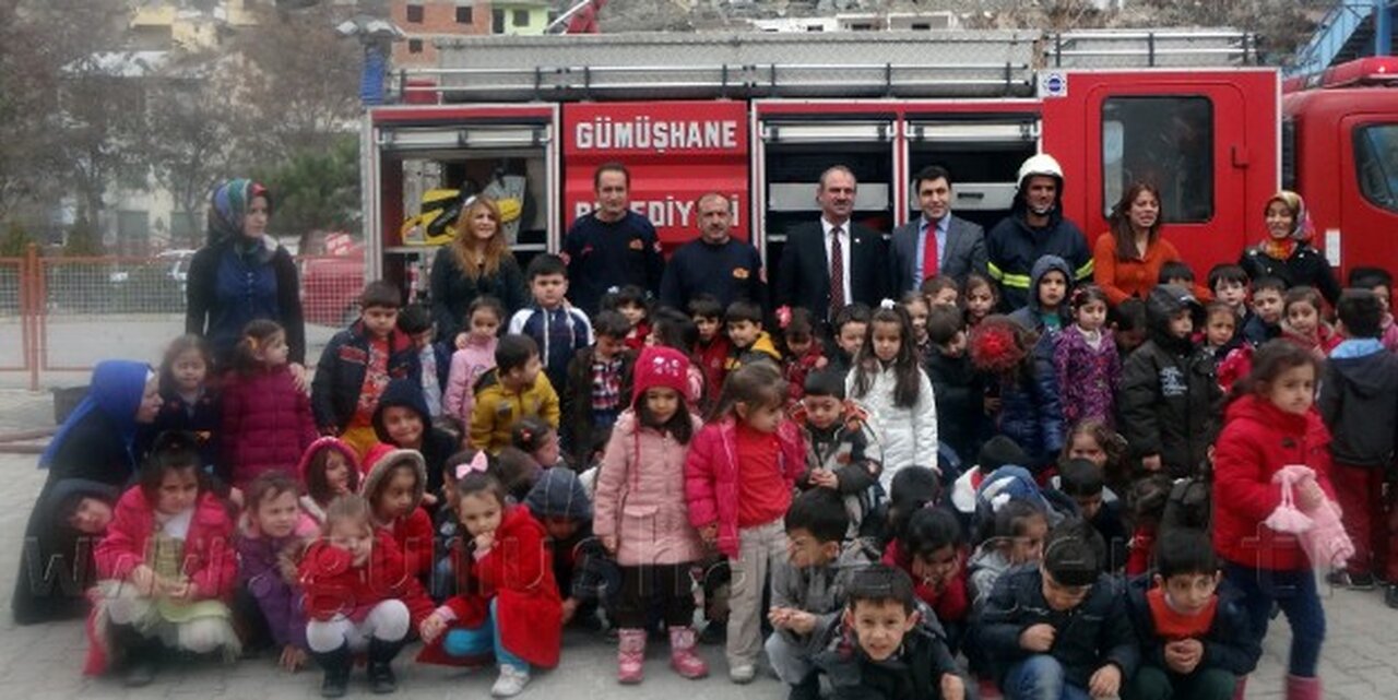 Gümüşhane Nesrin Halit Zarbun Anaokulunda, Gümüşhane Belediyesi İtfaiye Müdürlüğü tarafından sivil savunma, yangın ve kurtarma tatbikatı yapıldı.
