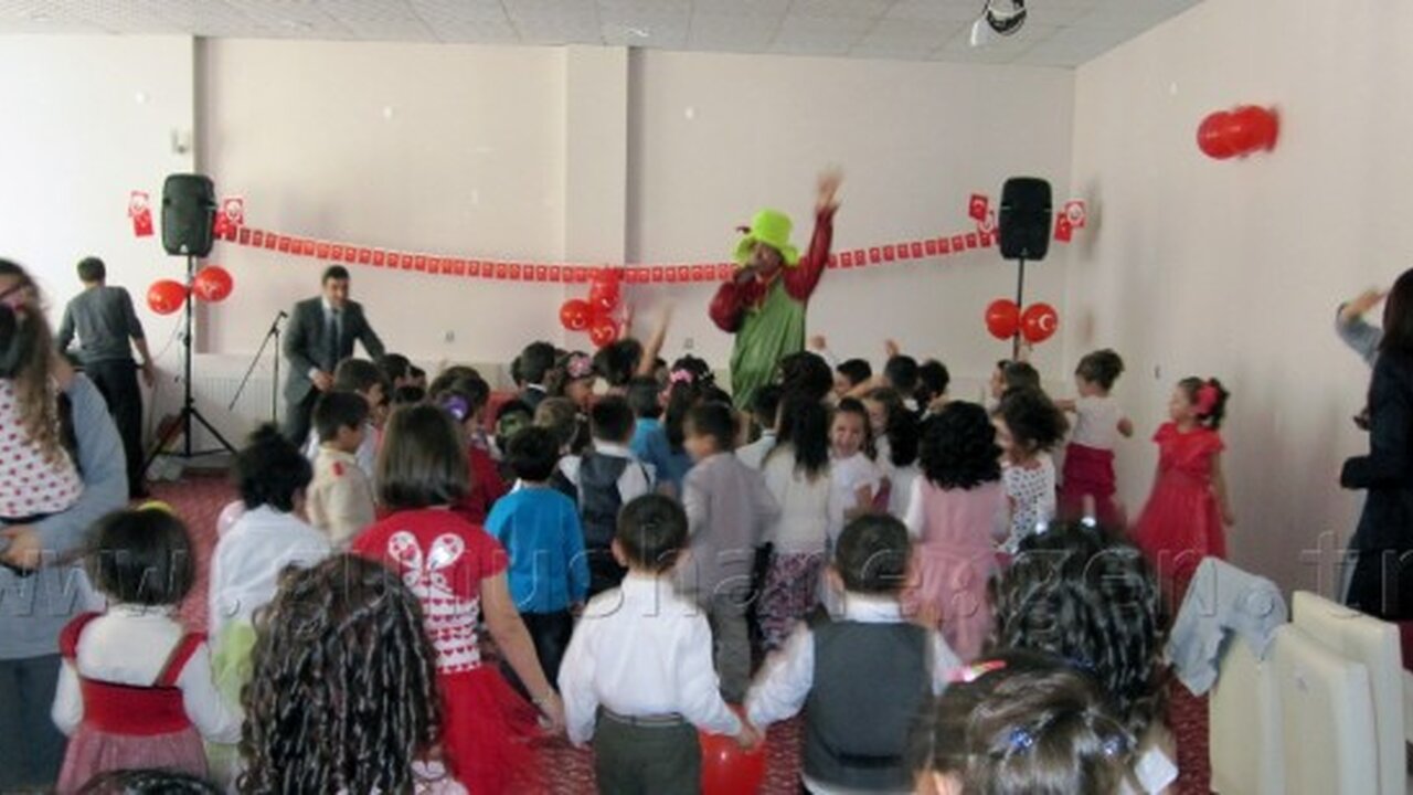 Çocuklara armağan edilen bu günde minikler 23 Nisan coşkusunu doyasıya yaşarken, programda palyaço tarafından eğlendirilen çocuklar Okul Müdür Vekili Akif Köse eşliğinde 23 Nisan pastası kestikten sonra müzik eşliğinde çeşitli oyunlar oynadı.