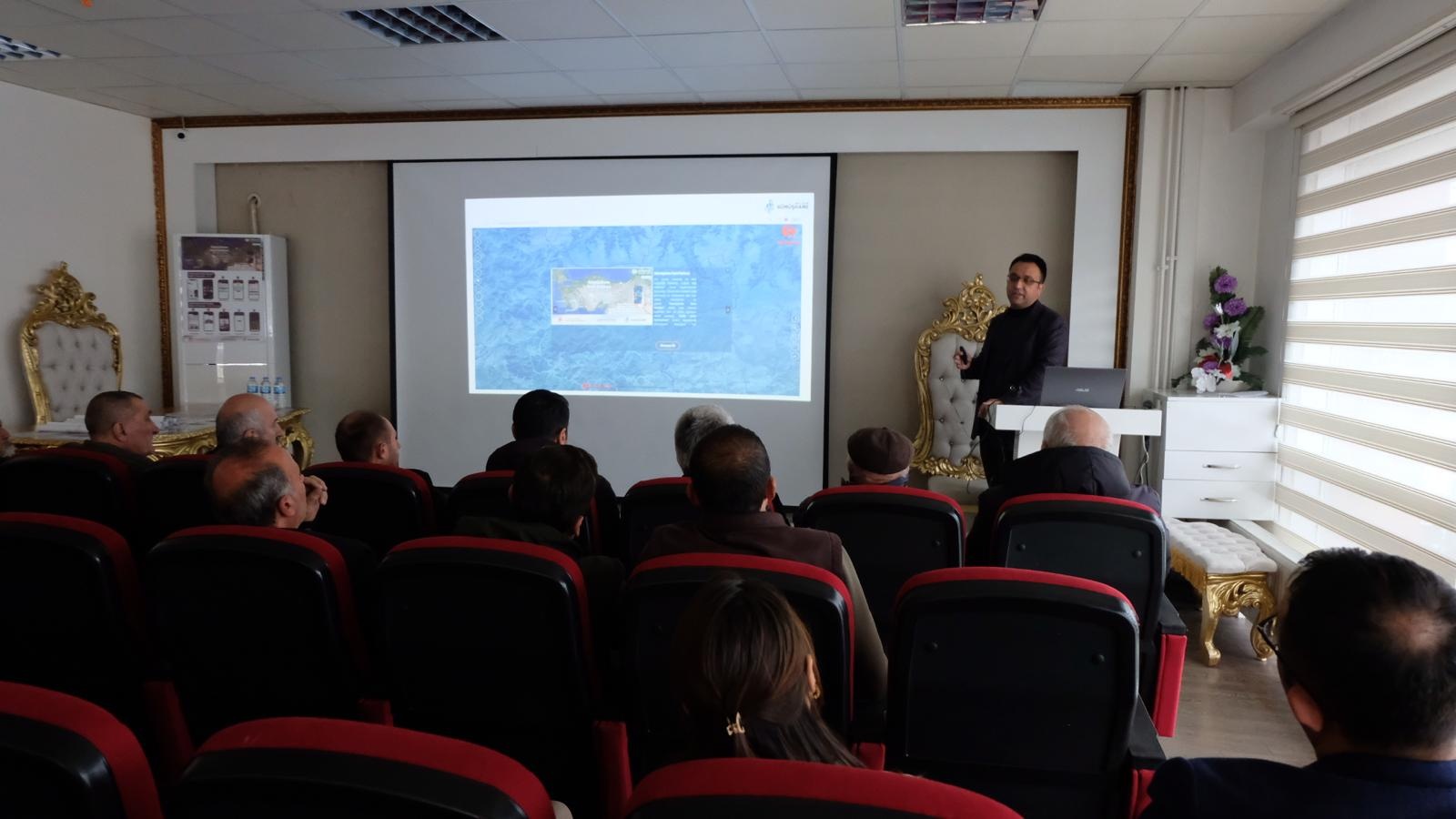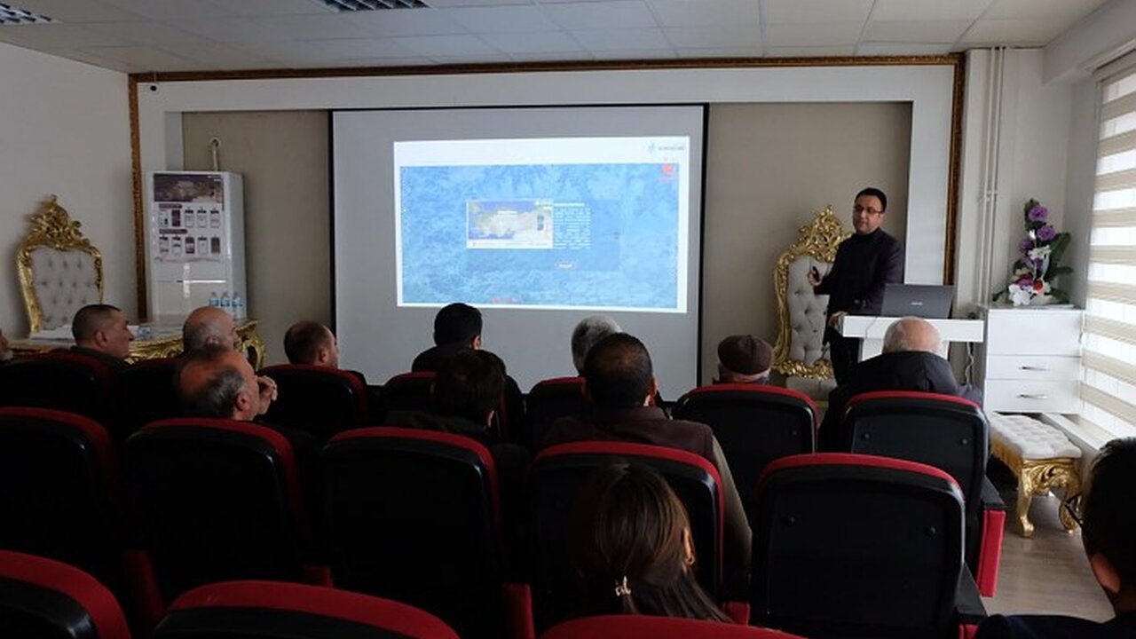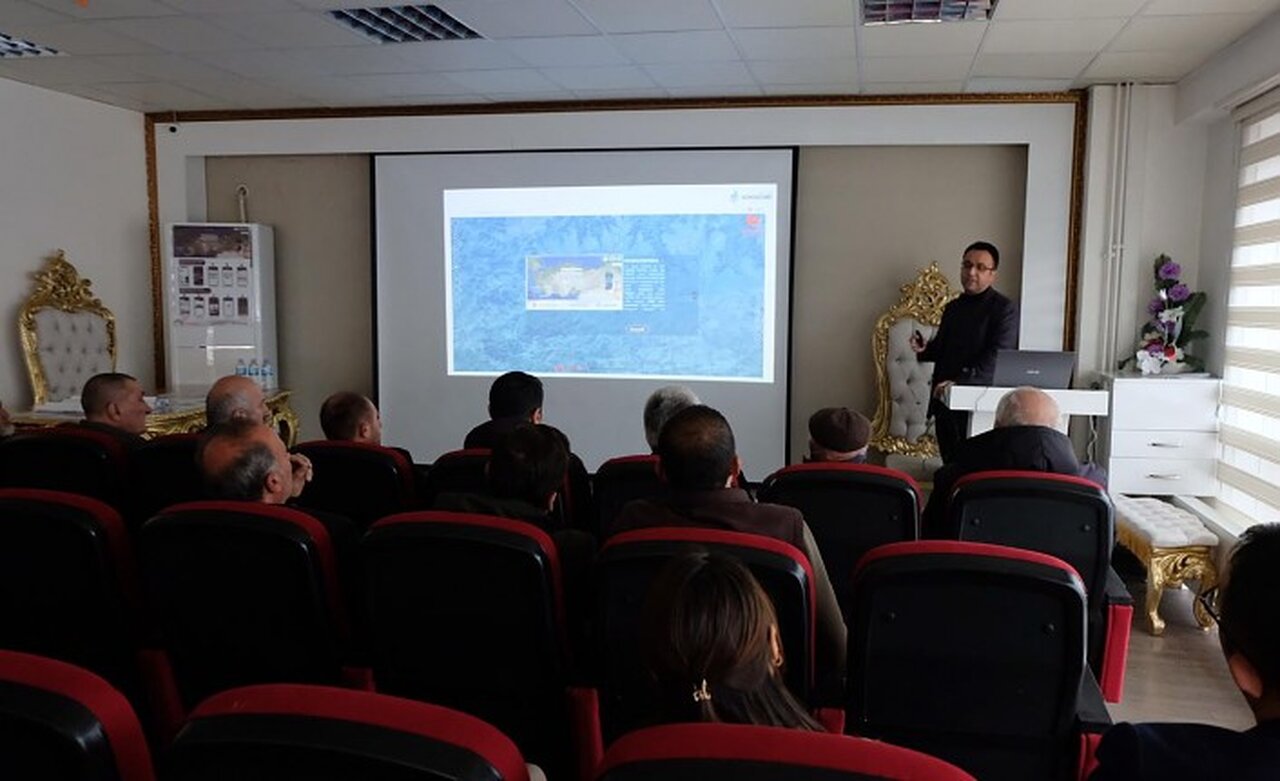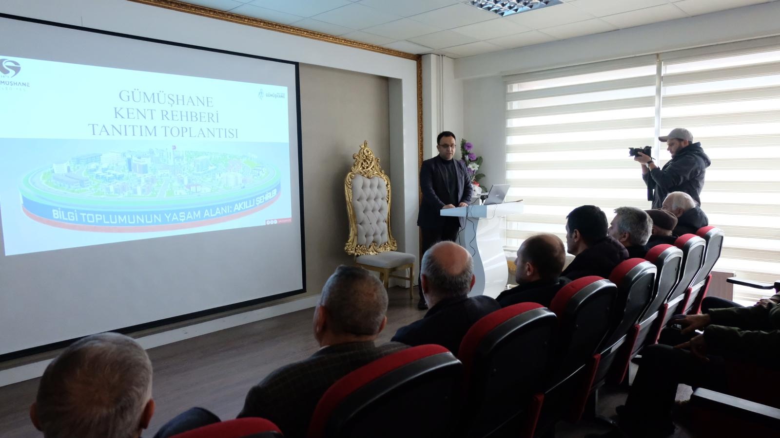 Belediye Nikah Salonunda düzenlenen toplantıda Gümüşhane Üniversitesi Meslek Yüksek Okulu (MYO) Coğrafi Bilgi Sistemleri Programı Öğretim Görevlisi Mürşit Şirin, muhtarlara 5 ay önce üzerine çalışmaya başladıkları Dijital Kent uygulamasının detaylarını ve kullanımına ilişkin bilgilendirmeleri aktardı.
