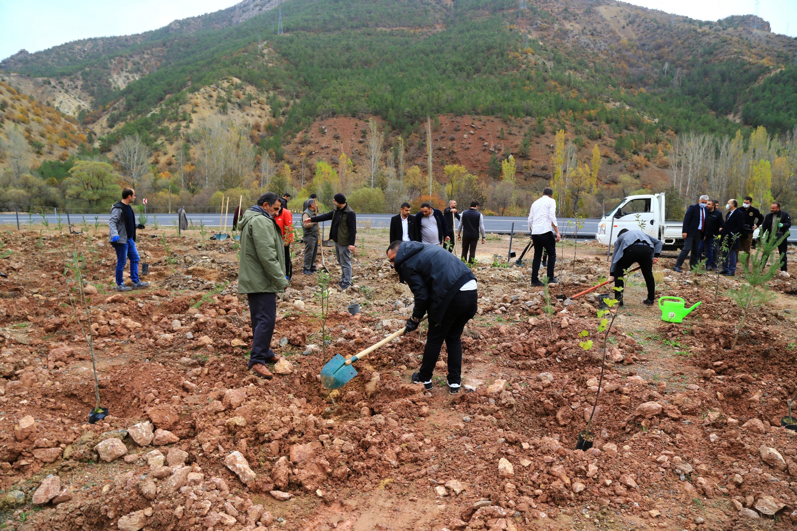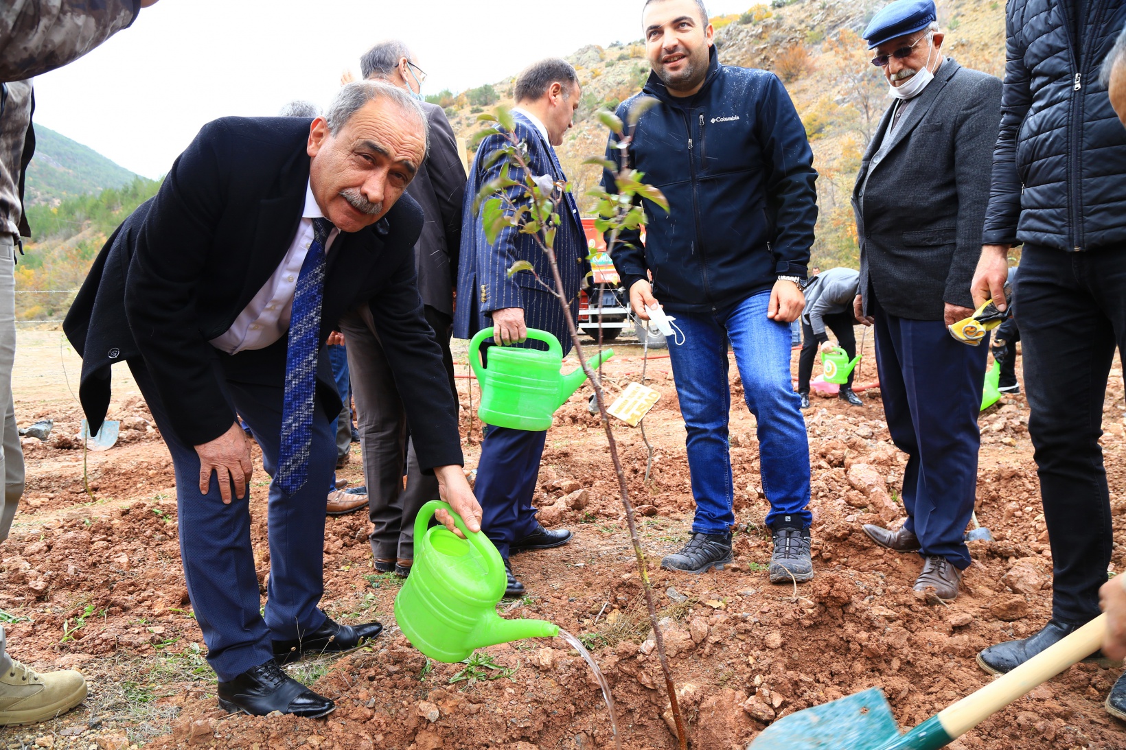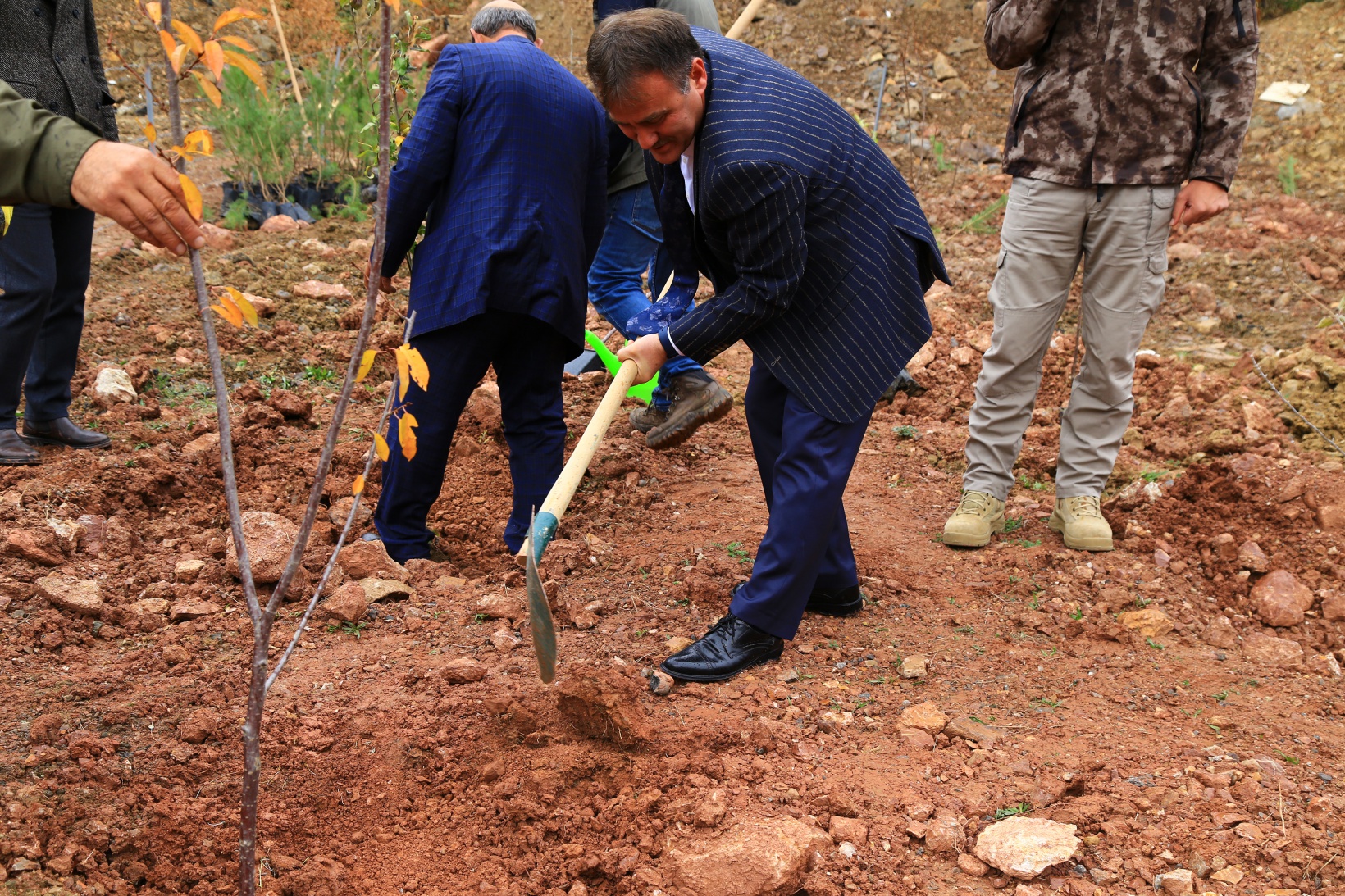Gümüşhane Üniversitesi Rektörü Halil İbrahim Zeybek ise konuşmasında Gümüşhane’nin potansiyel orman sınırları içerisinde yer almasına rağmen Anadolu’nun iç kısımlarındaki birçok yöre gibi orman varlığını kısmen kaybetmiş durumda olduğunu belirterek, “Bu nedenle doğru bir iş yapıyoruz. Biz yıllarca Anadolu’nun her yerinde çamla meşe diktik. Anlatırken derslerde Türkiye’de farklı iklim şartlarından bahsettik ama iş yaparken ağaçlandırma konusunda bütün flora Türkiye’nin her yerinde aynıymış gibi fidanları diktik. Bugün meyve dikiyoruz. Meyve de toprağa tutuyor. Ağaçların hepsi tutar. O nedenle doğru bir iş yapıyoruz. Kuşlar rızıklanacak, hayvanlar rızıklanacak, buradan gelen geçen rızıklanacak” ifadelerini kullandı.