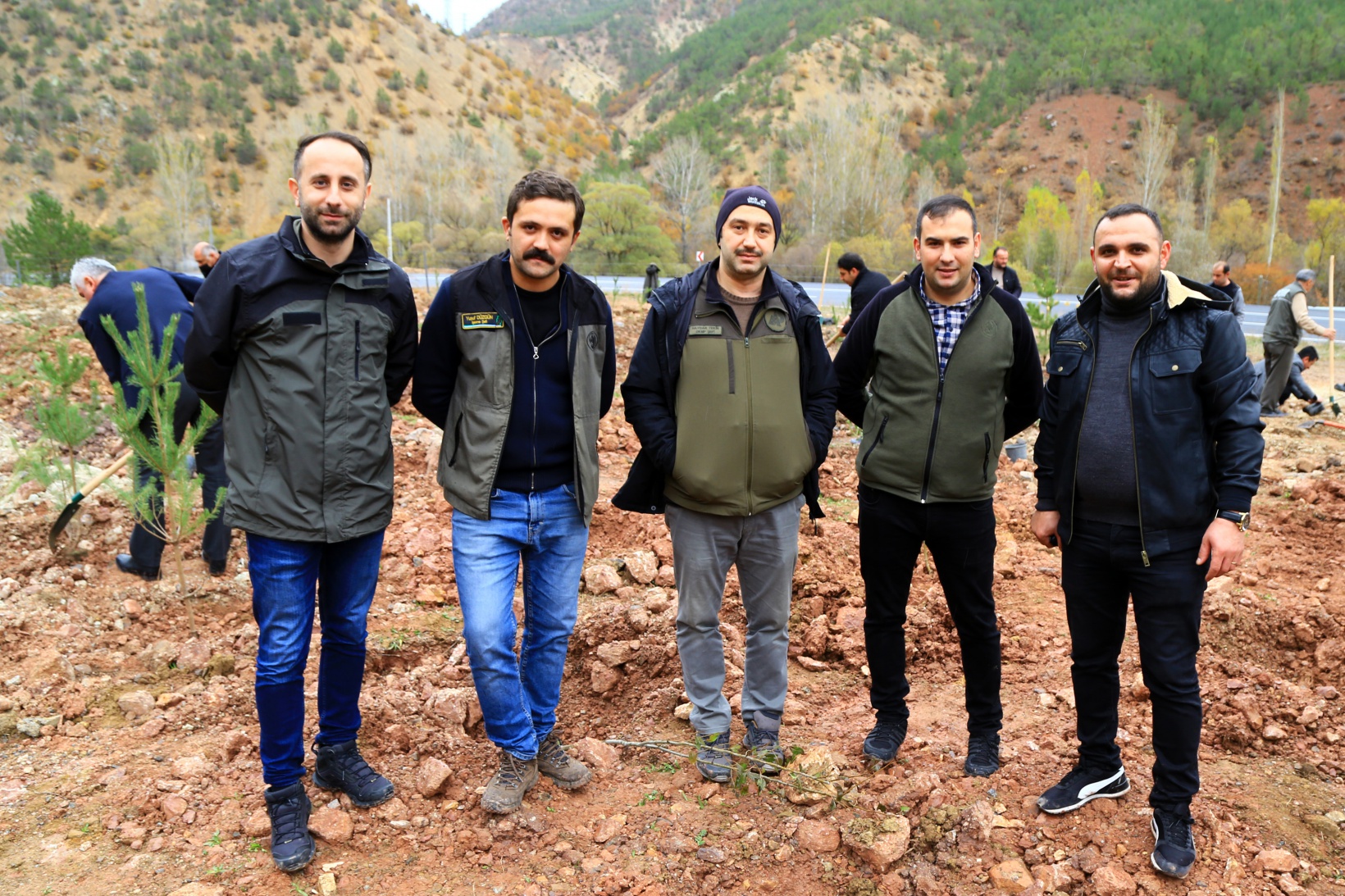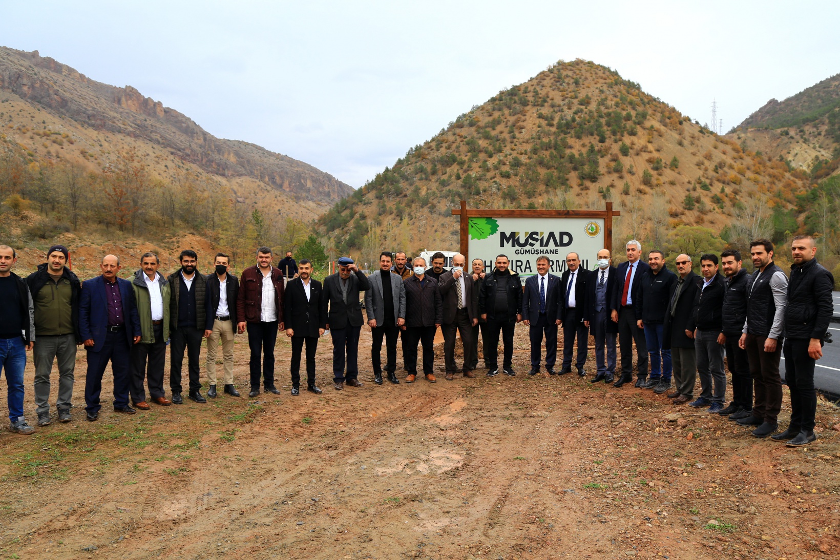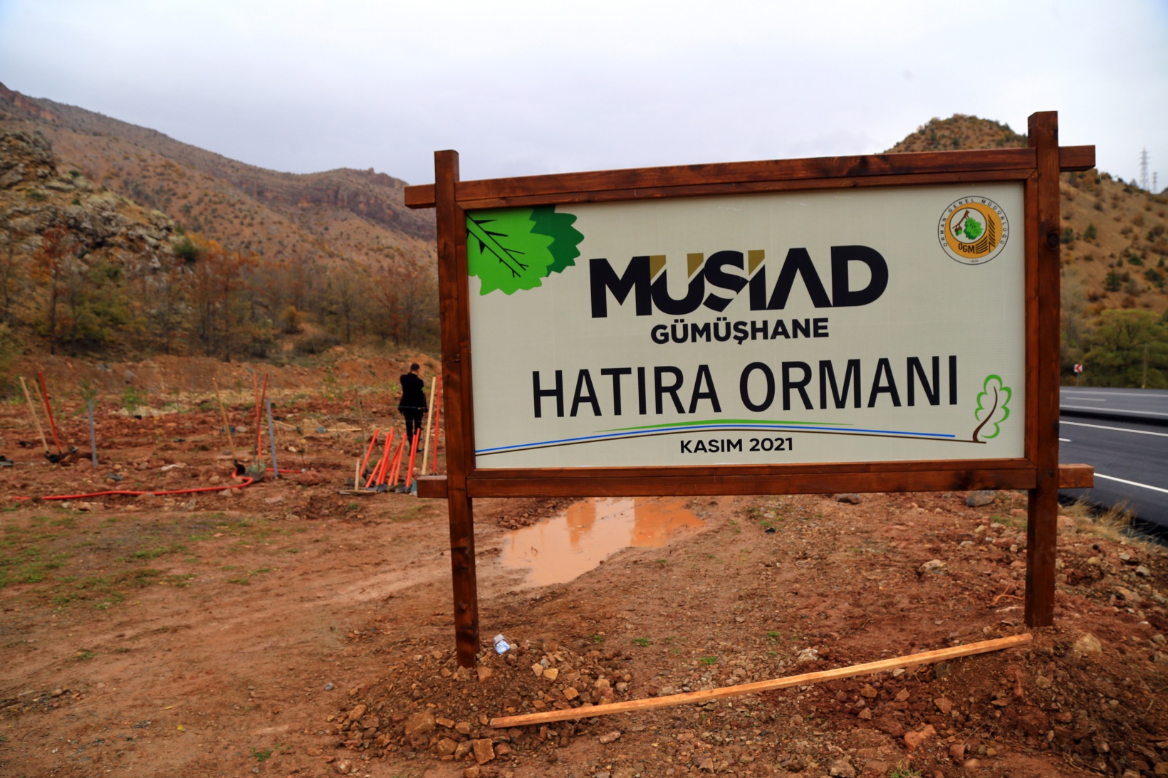 MÜSİAD Gümüşhane Başkanı Abdul Baki Kara da geçtiğimiz yaz ayları içerisinde sel ve yangın felaketleri nedeniyle ülkenin bir çok yerinde çok ciddi ormanların zarar gördüğünü hatırlatarak, “Biz hem bu afetlerden etkilenme dolayısıyla hem de şehrimizin orman varlığını arttırma noktasında böyle bir projeyi yapma gereksinimi duyduk. Bu projeyi yaparken de Orman İl Müdürümüz bize her noktada da destek oldu. Anayol kenarını özellikle aramamızın sebebi şu oldu: Dedik ki sadece çam değil, birazda meyve ağacı dikelim. Bu meyve ağaçlarıyla beraber anayol kenarından geçen misafirler, yolcular herkes durup meyveden alsın, yesin. Üzerine meyvelerimizde olmaya balayınca da güzel ve anlamlı bir yazı yazacağız. Bu meyveler kamuya açıktır, herkes yiyebilir, helaldir şeklinde. Fidanlarımız tutana kadar sulama noktasında da bizlere arazöz desteği verecek Orman İşletme Müdürlüğümüz. Bizde sürekli ormanımıza bakacağız. Burayı bir çocuk gibi büyütmeyi Allah nasip ederse hedefliyoruz” dedi.