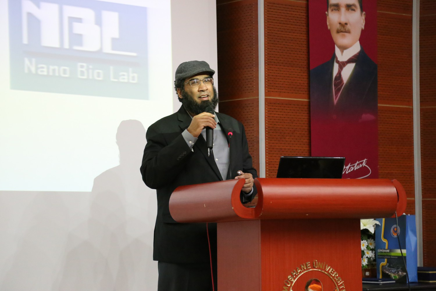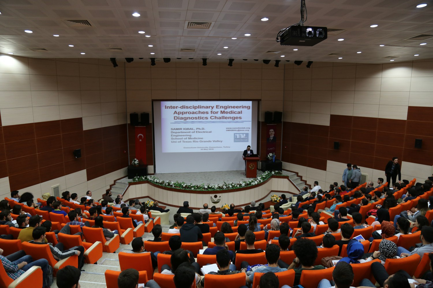 Gümüşhane Üniversitesi Mühendislik ve Doğa Bilimleri Fakültesi Çok Amaçlı Salon’da gerçekleştirilen programda konuşan University of Texas Rio Grande Valley’den Profesör Samir Iqbal, disiplinlerarası çalışmalarda biyosensör uygulamaları ve kanser teşhisinde nanoteknoloji ile ilgili çalışmaları hakkında bilgiler verdi.