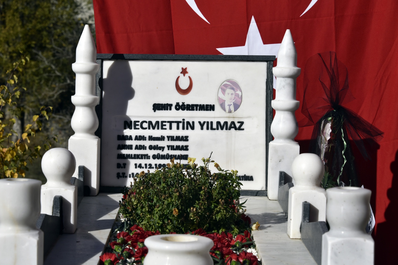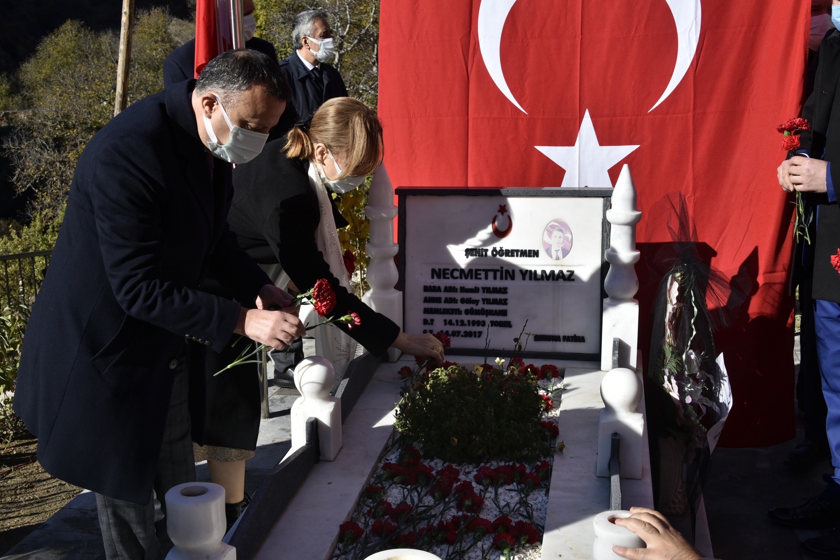 Memleketi Gümüşhane’ye dönerken terör örgütü mensupları tarafından kaçırıldıktan sonra 23 yaşında şehit edilen sınıf öğretmeni Necmettin Yılmaz, 24 Kasım Öğretmenler Gününde kabri başında anıldı.