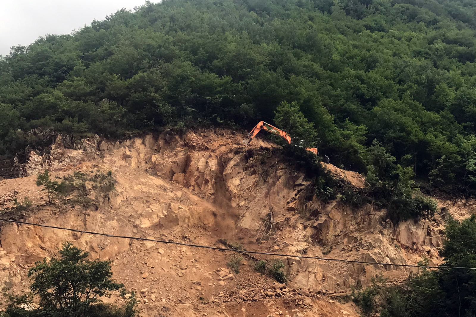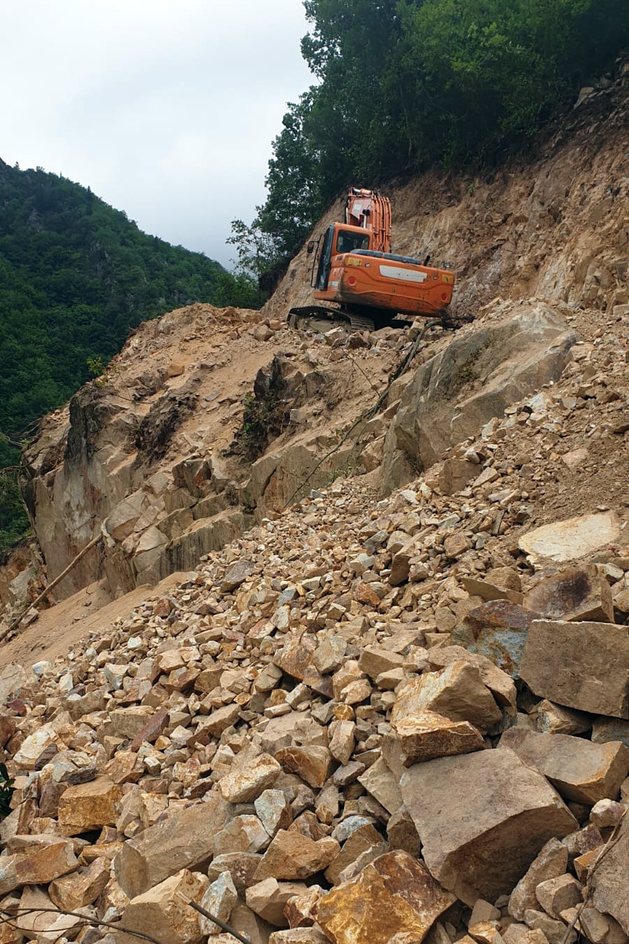 Gümüşhane’nin Kürtün ilçesinde dağdan koparak okulun bahçesine düşen kayalar temizleniyor, olayın tekrar yaşanmaması için yapılan bilimsel çalışma kapsamında çelik bariyer sistemi yapılıyor.