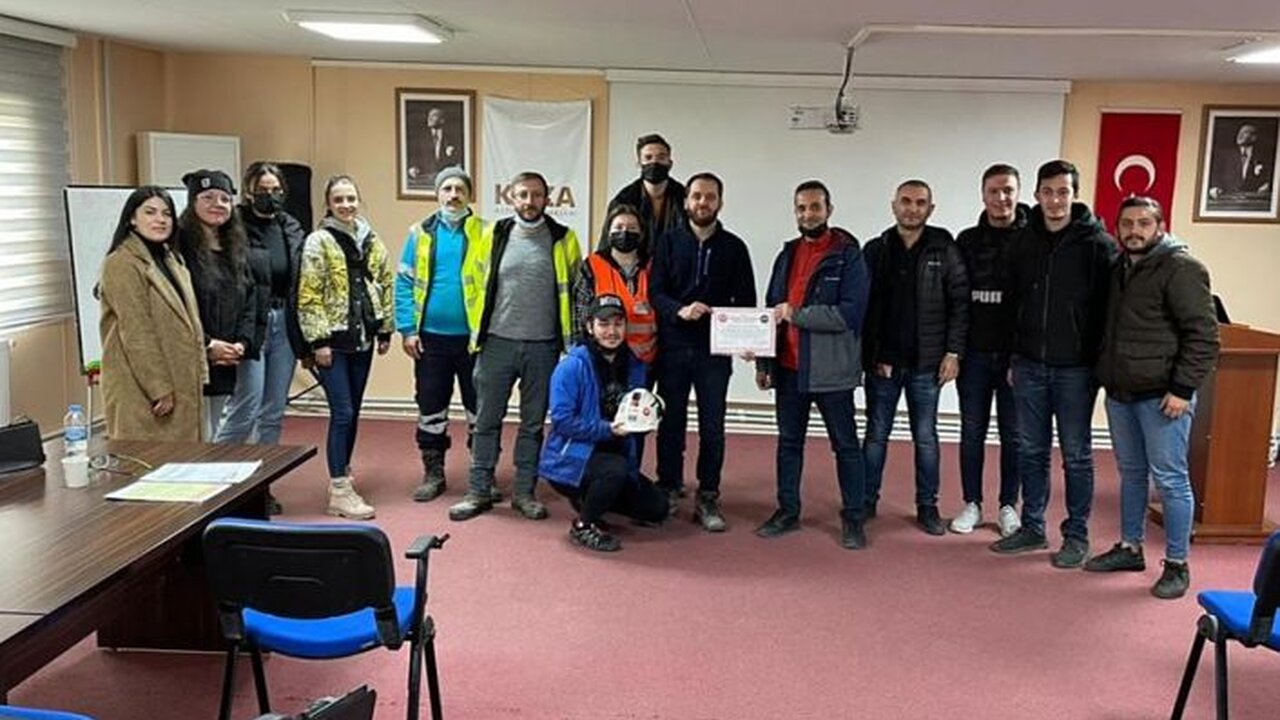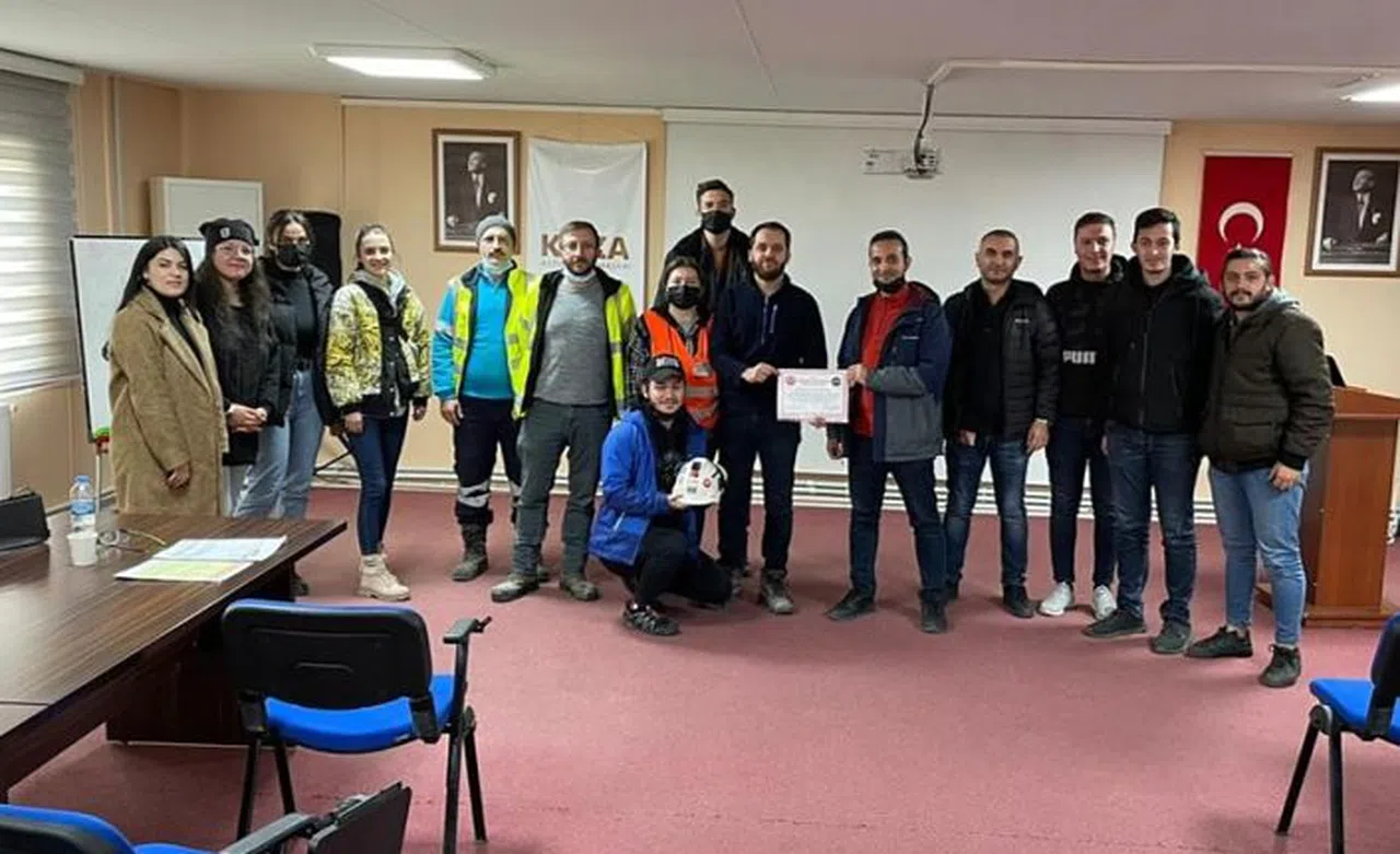 Sahaya çıkmadan önce İş Sağlığı ve Güvenliği (İSG) Müdürü Gökhan Demir ve İSG teknikeri Zafer Özdemir tarafından öğrencilere, Koza Altın İşletmelerinde İSG uygulamaları konulu bir eğitim verildi.