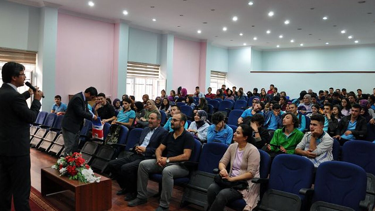 Seminere konuşmacı olarak katılan Türk Telekom Fen Lisesi Tarih Öğretmeni Fazıl Yazıcı’nın sunumunun ardından söz alan İl Milli Eğitim Müdür Yardımcısı Mesut Olgun, “Bu ülkenin geleceği olduğunuza dair kurulan cümlelerin hiçbirisi hamasi cümleler değil, hiçbirisi edebi cümle olsun diye kurulan cümleler değil. Dün birilerinin taşıdığı bayrağı bugün biz, yarın siz taşıyacaksınız. Şairin şiirlerinin mısrasının sonunda “Sen vatansız bırakma Allah’ım” duası belki de kurabileceğimiz birçok cümleden çok daha anlamlı bir cümle. Bizim için bu millet için, bu toplum için biz aç kalabiliriz, susuz kalabiliriz, işsiz, aşsız kalabiliriz ama bu millet vatansız yaşamaz, yaşayamaz, devletsiz yaşayamaz. Bunun her zaman tarihte örneğini vermiş bir milletin, medeniyetin mensupları ve çocuklarıyız. Biz buradaki arkadaşlarımızla bu konuyu sınırlı görmüyoruz. Okullarımızda öğrenim hayatlarını sürdüren 19 bin 500 öğrencimiz ve bin 500 çalışanımızla yarınlarımıza sizleri hazırlarken kendi geleceğiniz için, vatanınıza ve milletinize faydalı bireyler olarak yetişmenizi sağlamak ve bu ülkenin yarınlarında söz sahibi olacak insanların belli hassasiyetleri taşımasını arzu ettiğimiz için bu çabanın içerisindeyiz” dedi.