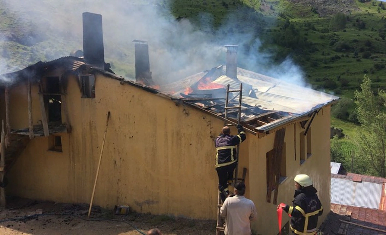 Gümüşhane’nin merkeze bağlı Olucak köyünde meydana gelen yangında bir ev kullanılamaz hale geldi.