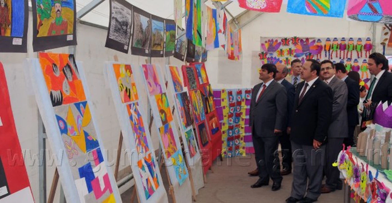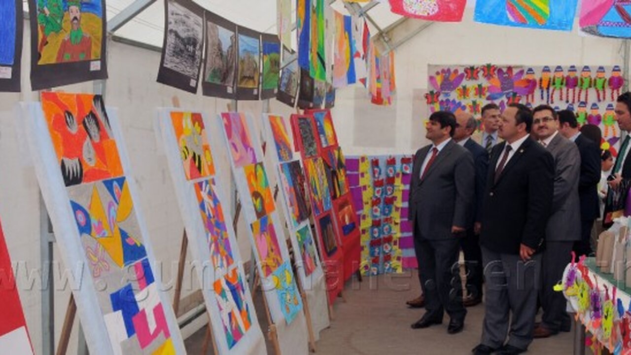 Okul öğrencilerinin Türkmen Kızı folklor oyunu ve Minik Semazen gösteri ile başlayan törende daha sonra serginin açılışını protokol üyeleri birlikte yaptı.