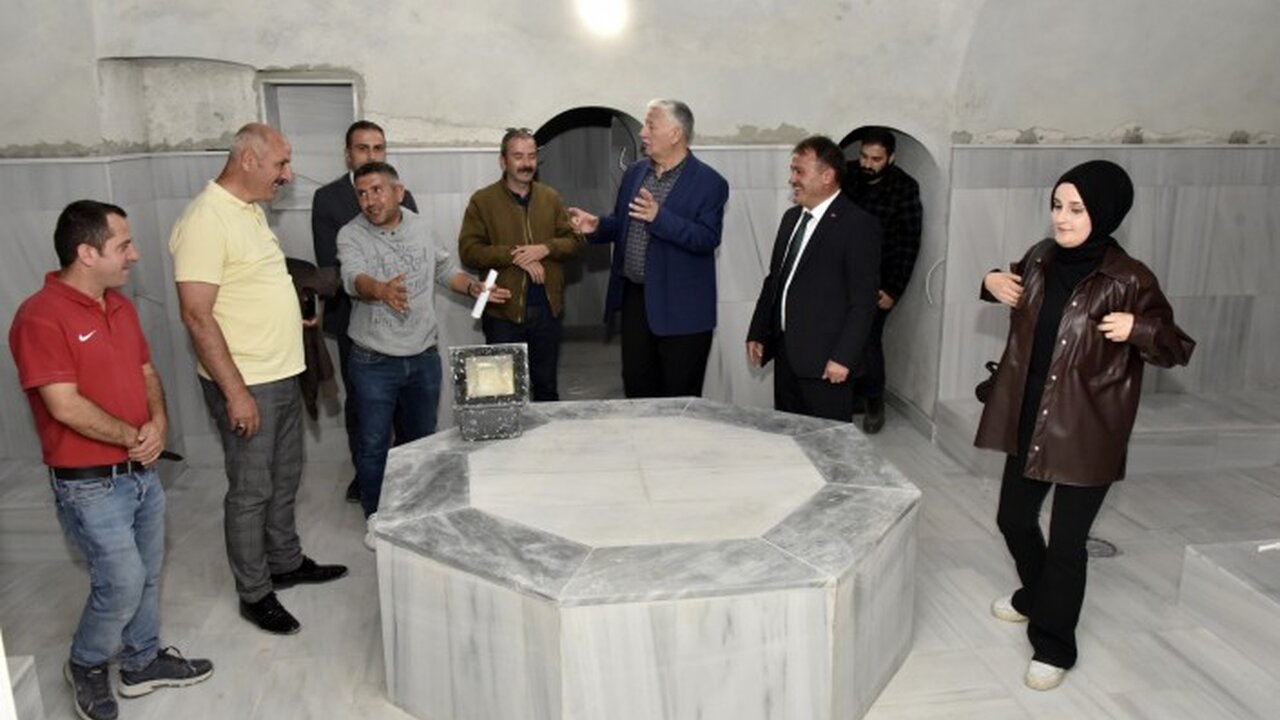 Belediye Başkanı Ercan Çimen, Paşa Hamamı, restoran olarak hizmet verecek Zeki Kadirbeoğlu Konağı ve etrafında oluşturulan yaşam alanında devam eden çalışmaları yerinde inceleyerek burada gazetecilere açıklama yaptı.