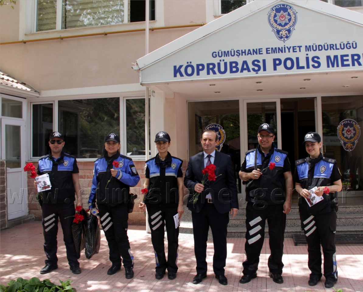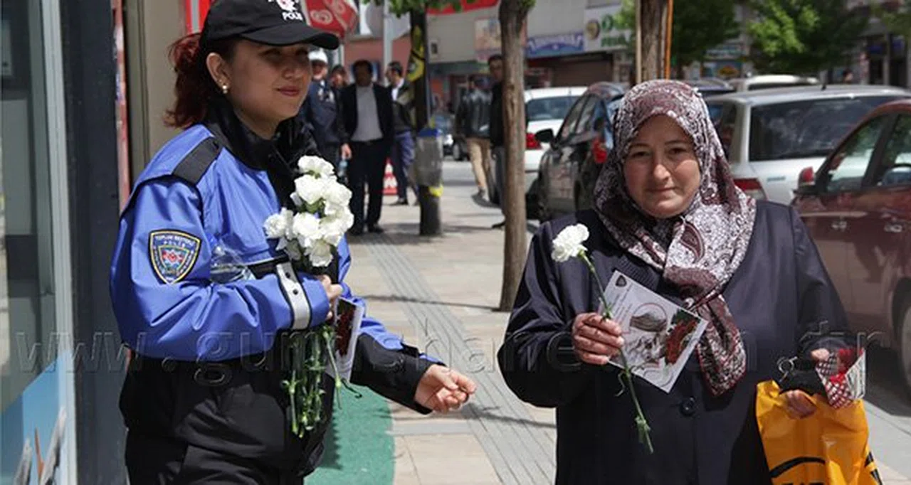 Gümüşhane Emniyet Müdürlüğü Toplum Destekli Polislik Şube Müdürlüğü, Anneler Günü nedeniyle caddelerde annelere karanfil ve broşür dağıttı.
