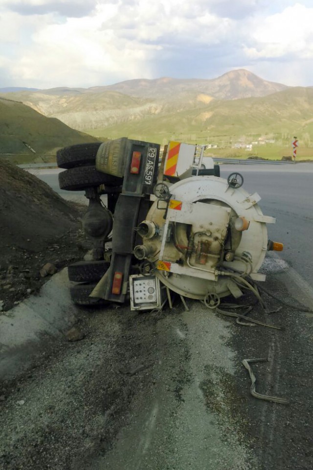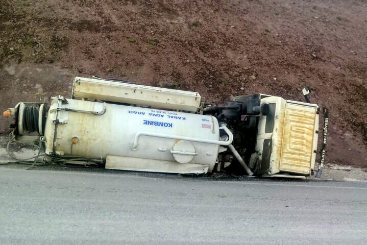 Edinilen bilgiye göre Kelkit Belediye Başkanlığına ait İslami Yavuz yönetimindeki 29 AS 597 plakalı kanal açma aracı (vidanjör) bakım için gittiği Erzincan’dan dönerken Pöske dağında sürücünün direksiyon hakimiyetini kaybetmesi sonucu yan yattı.