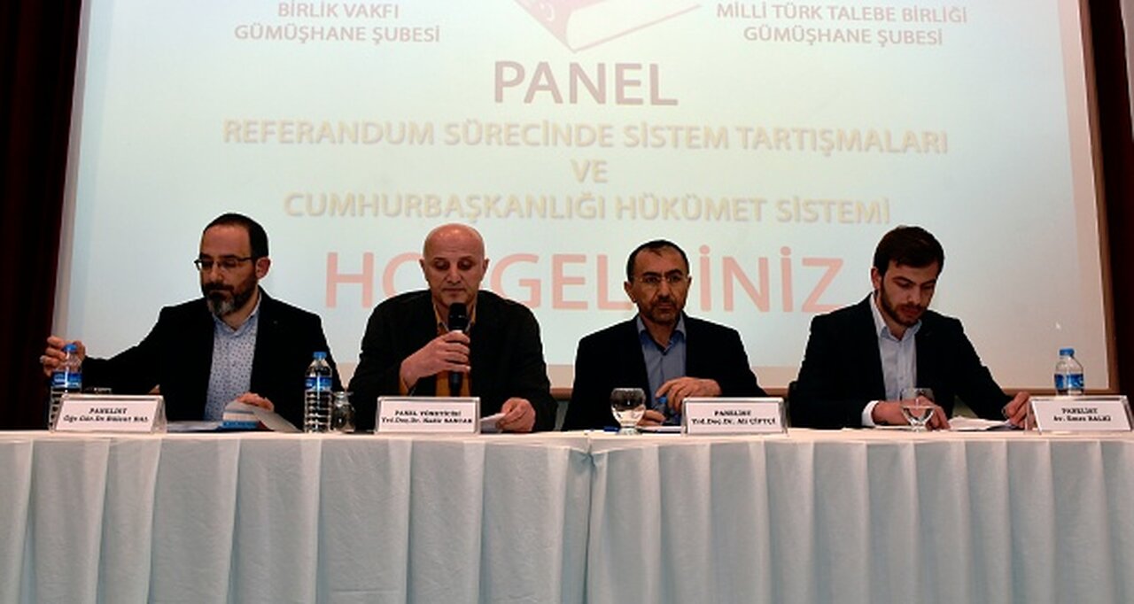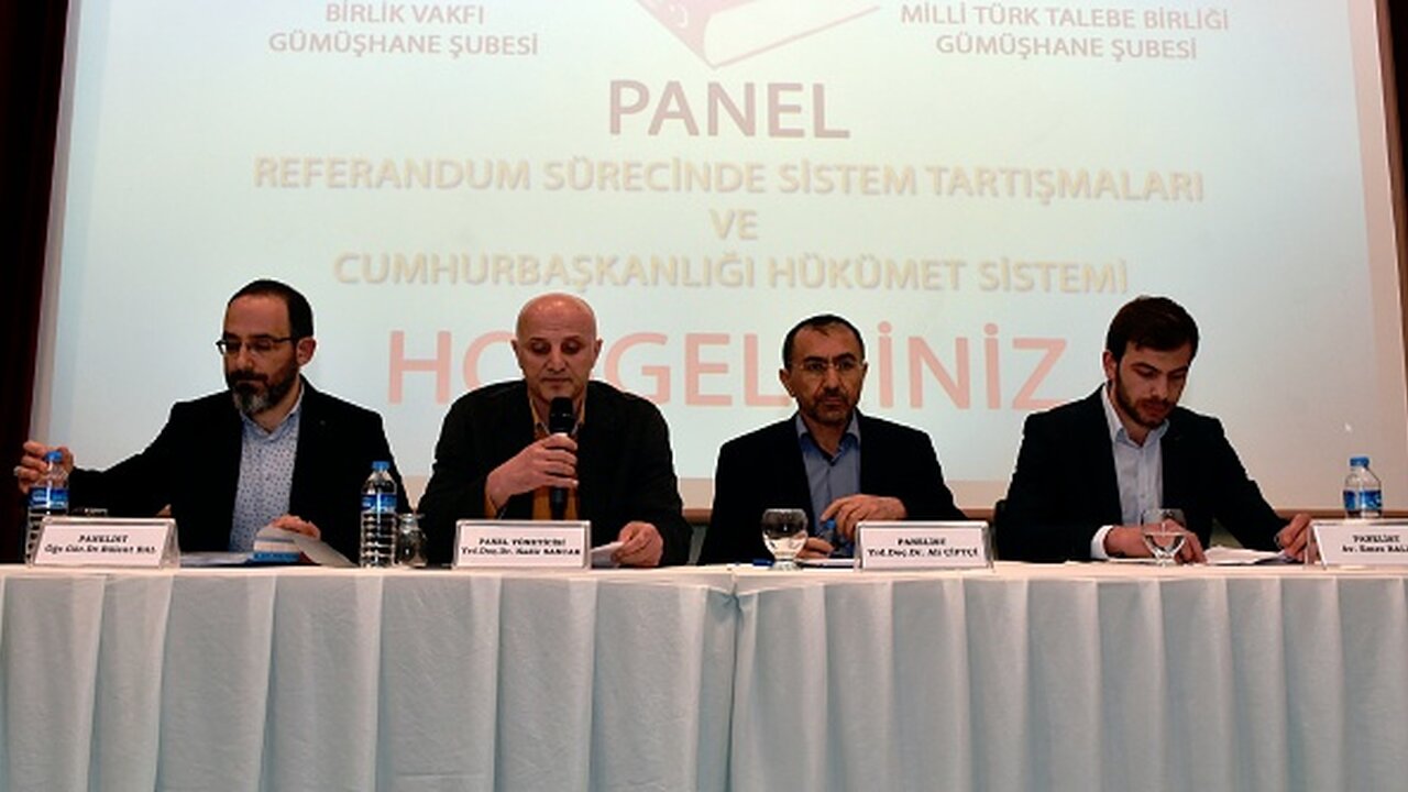 Gümüşhane'de Birlik Vakfı Gümüşhane Şubesi tarafından "Referandum Sürecinde Sistem Tartışmaları ve Cumhurbaşkanlığı Hükümet Sistemi" konulu panel düzenlendi.