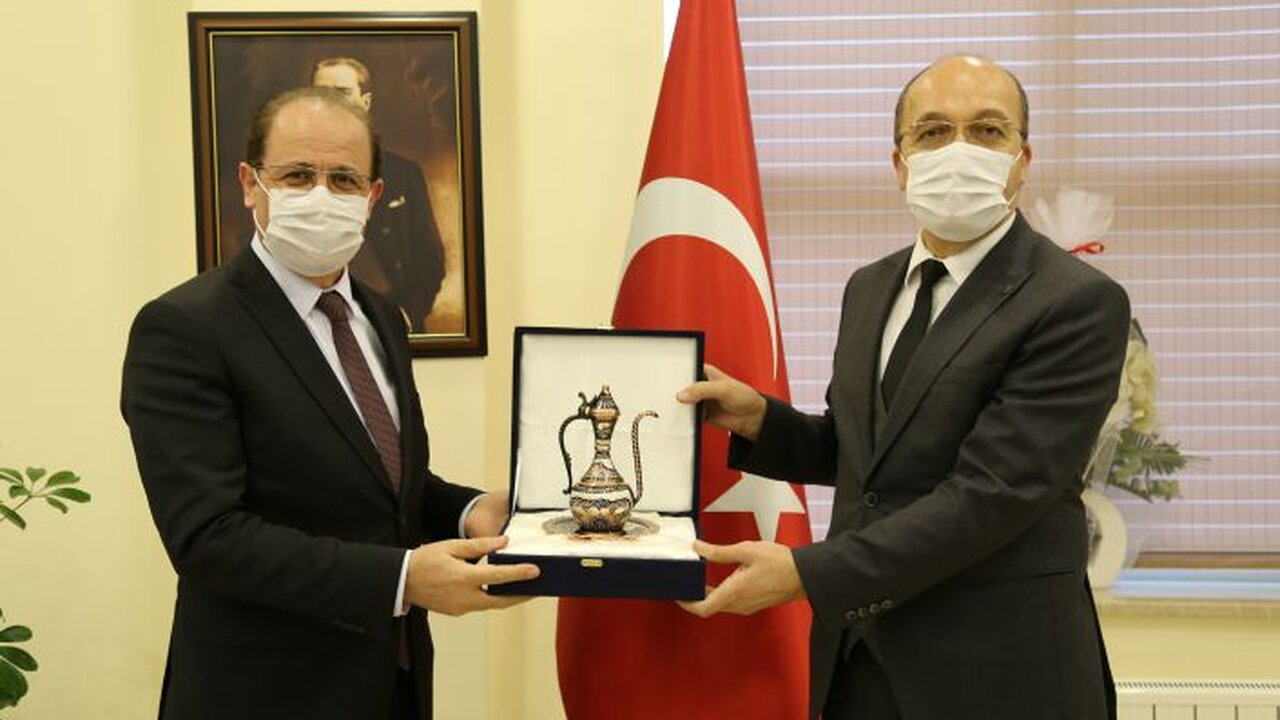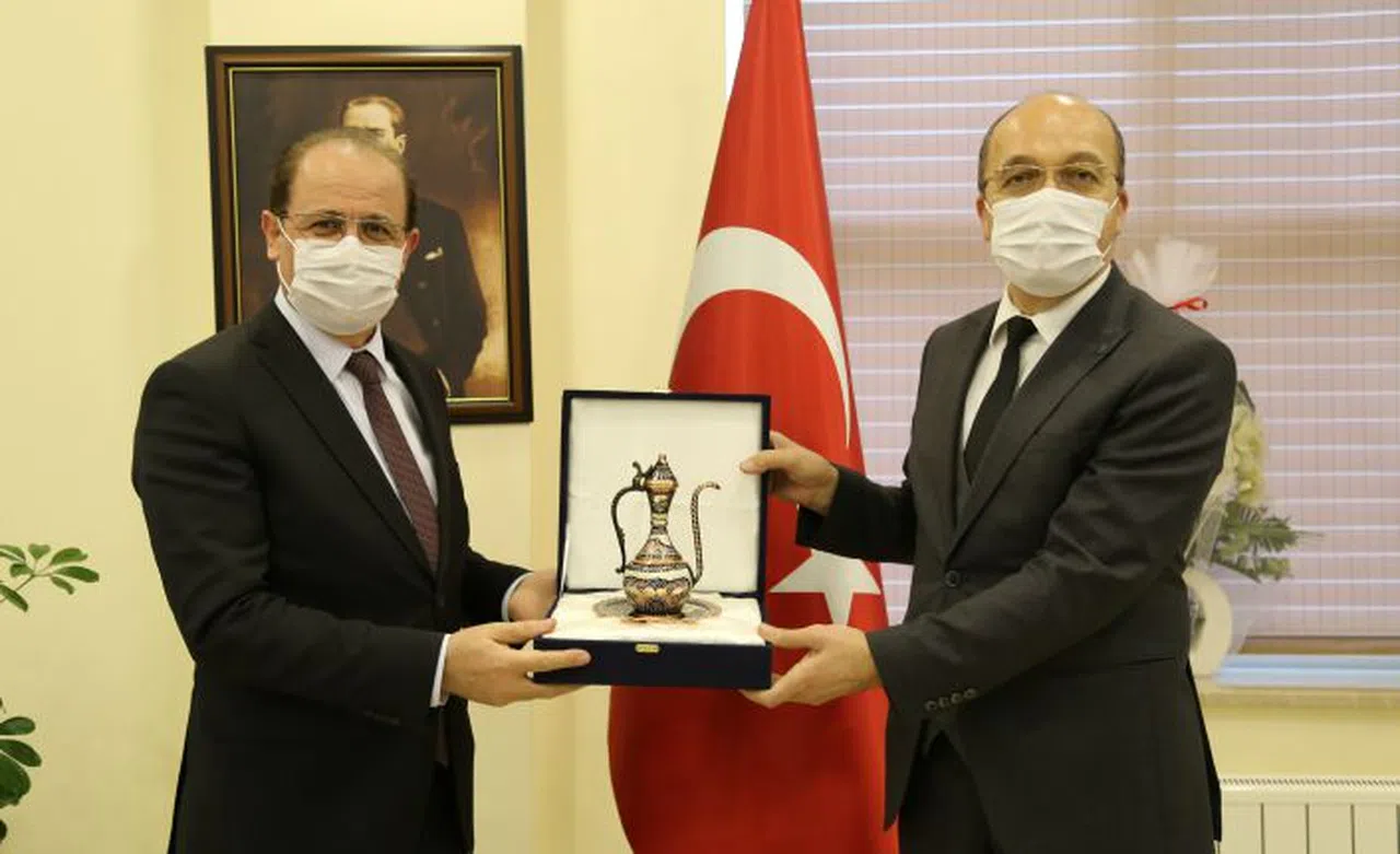 Rektörlük makamında gerçekleştirilen ziyaret karşılıklı hediye takdimi ile sona erdi.