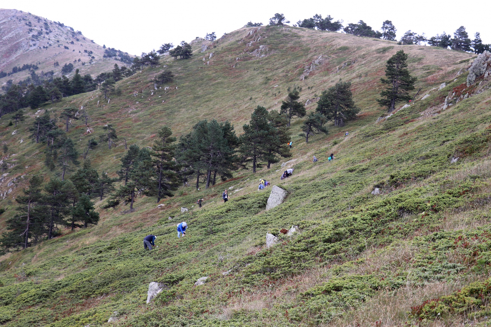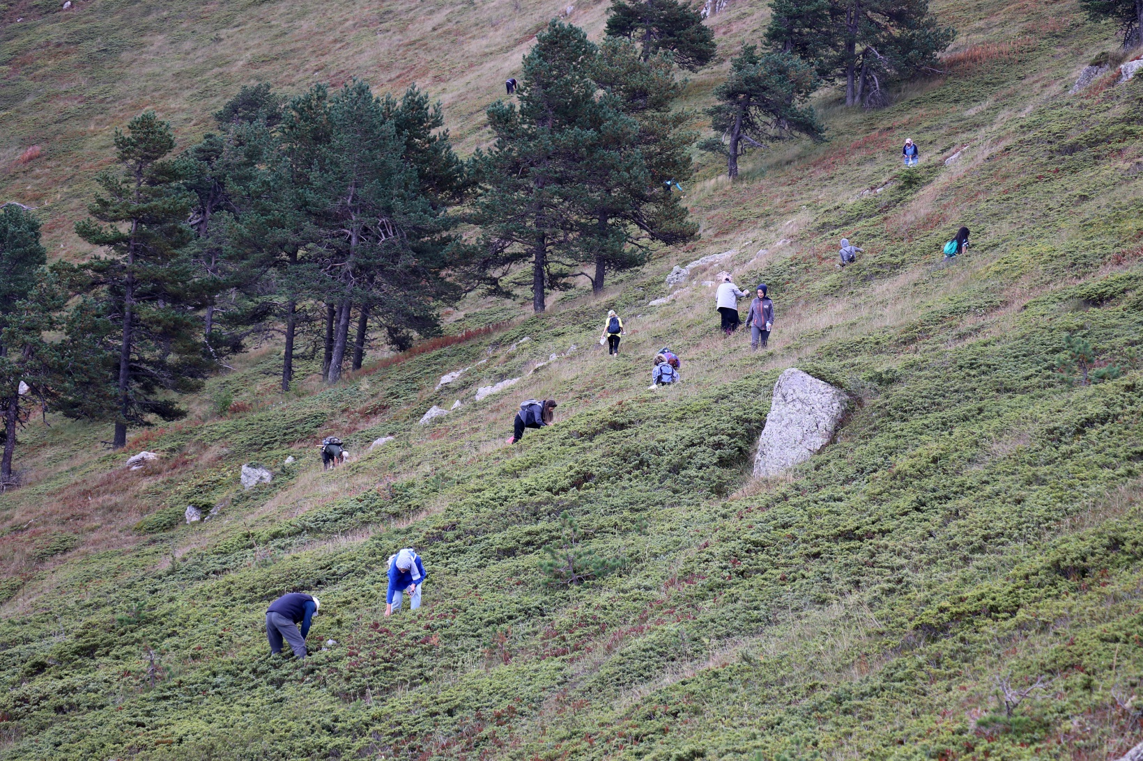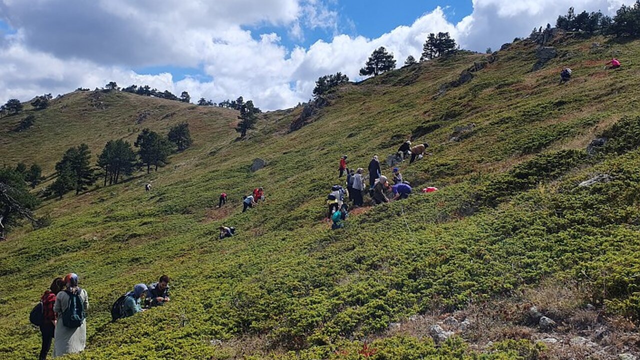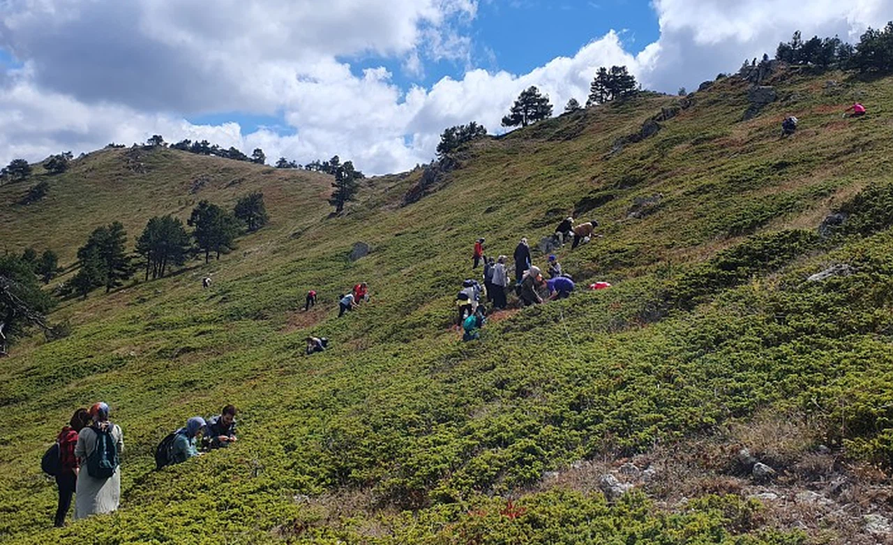 Yüksek rakıma rağmen devasa çam ağaçlarının içerisinden Gelinkaya-Zigana-Cebeli üçgeninde kalan 2 bin 300 metre rakımlı Ziyaret Tepe mevkiine ulaşan sporcular burada oldukça fazla olan ve bölgede mavi altın olarak bilinen Likarpa toplamaya başladı.