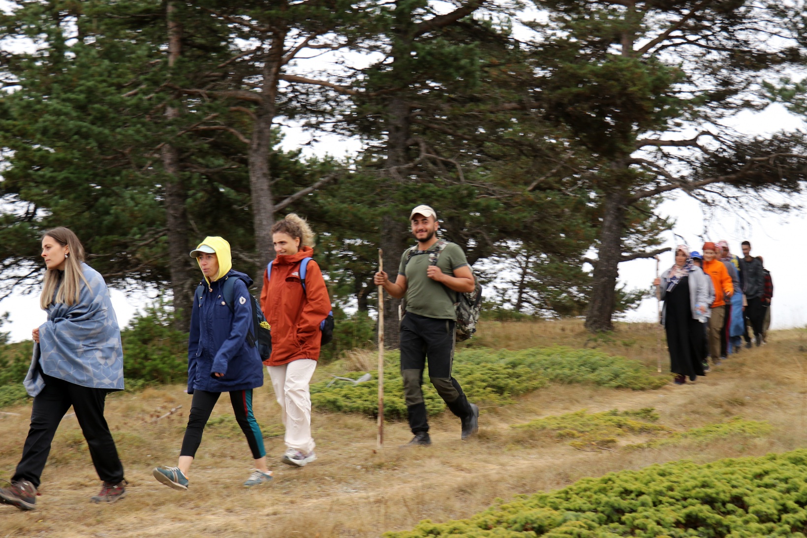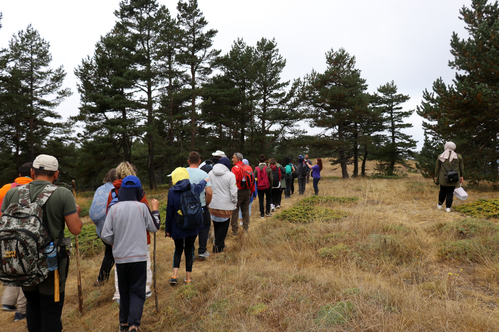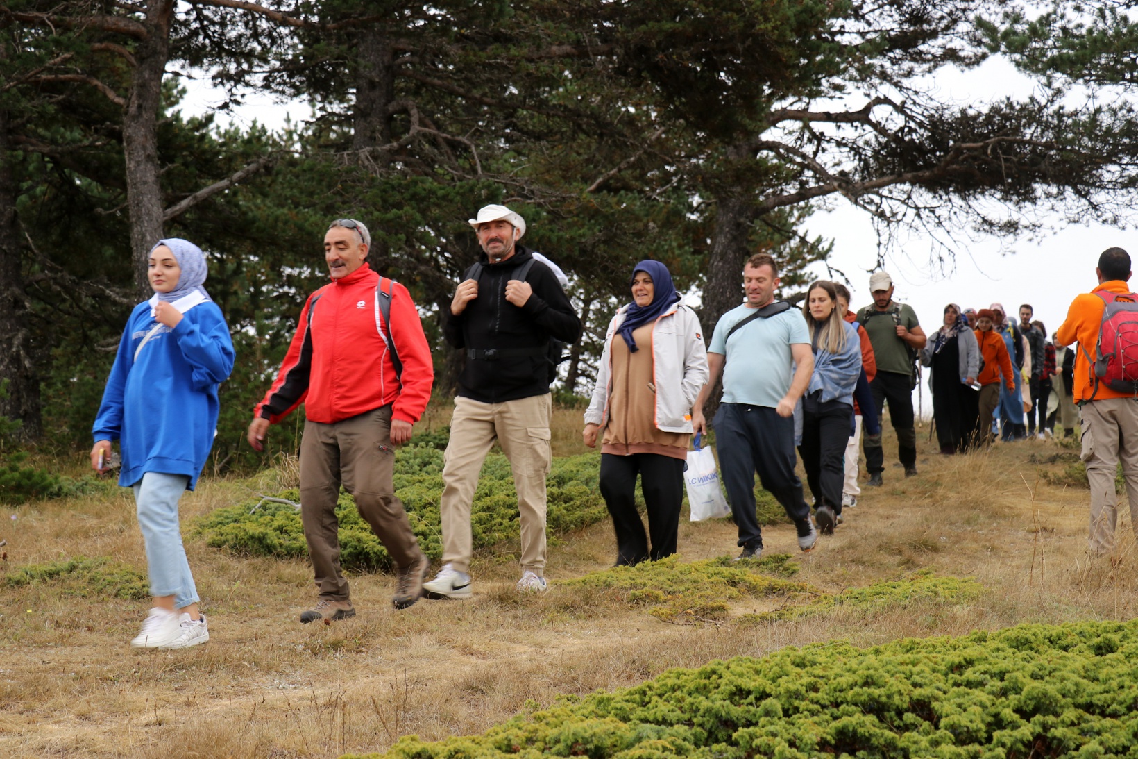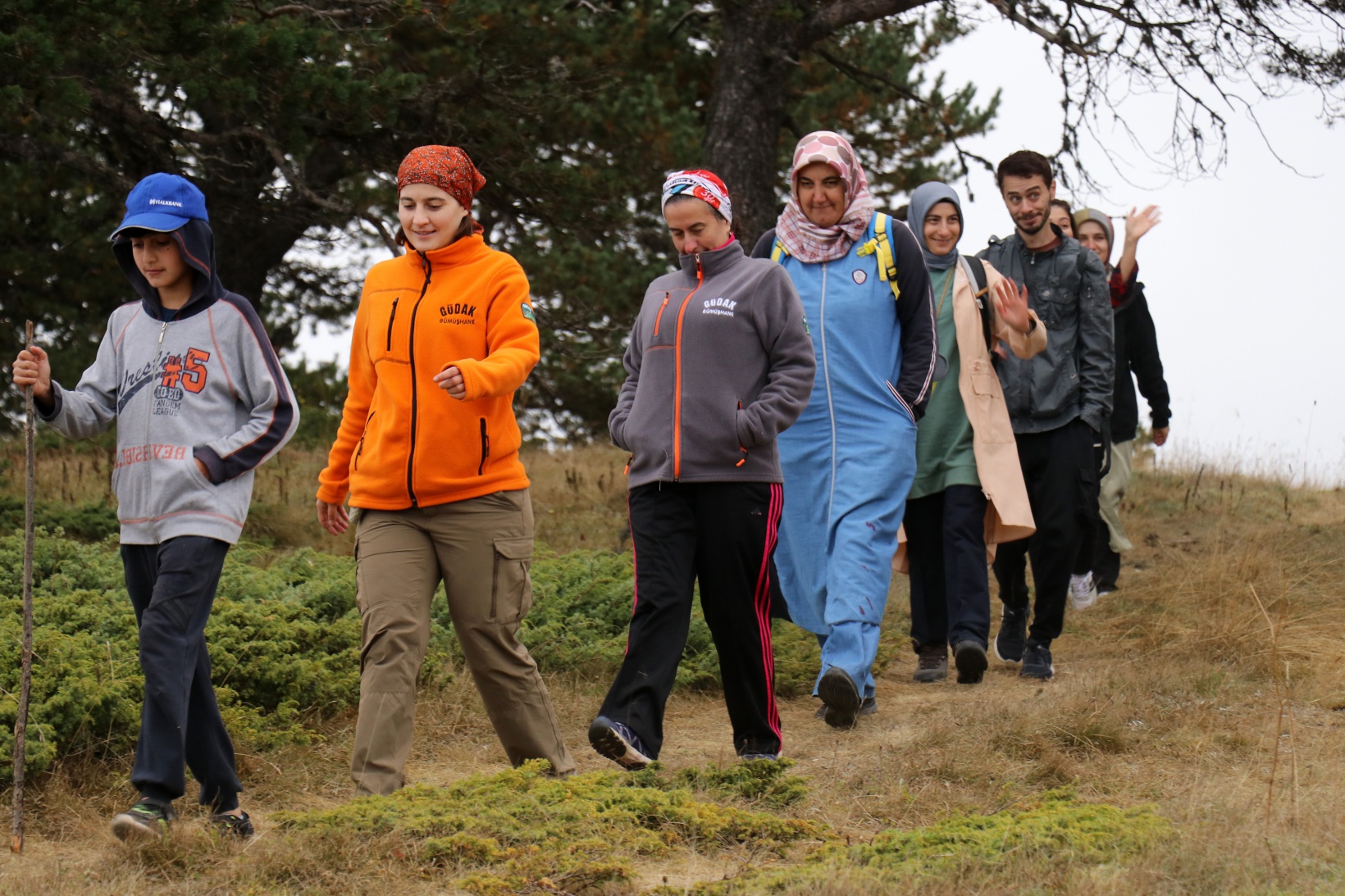 Torul ilçesine bağlı Harmancık köyü sınırlarındaki Godanas Ormanları dört yol mevkiine araçlarıyla ulaşan 38 doğasever buradan çam ağaçlarının kokusu arasında yürüyüşlerine başladı.