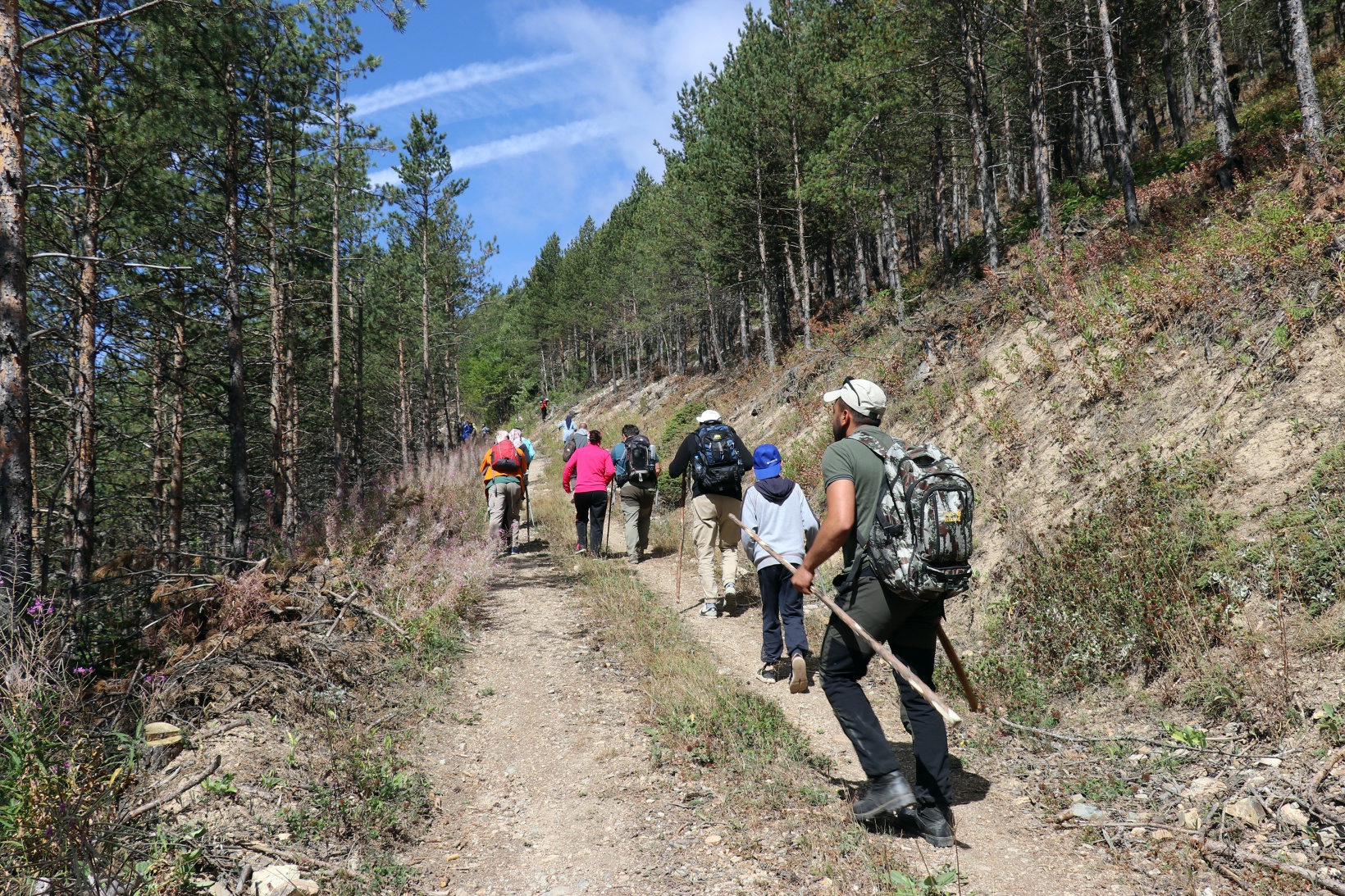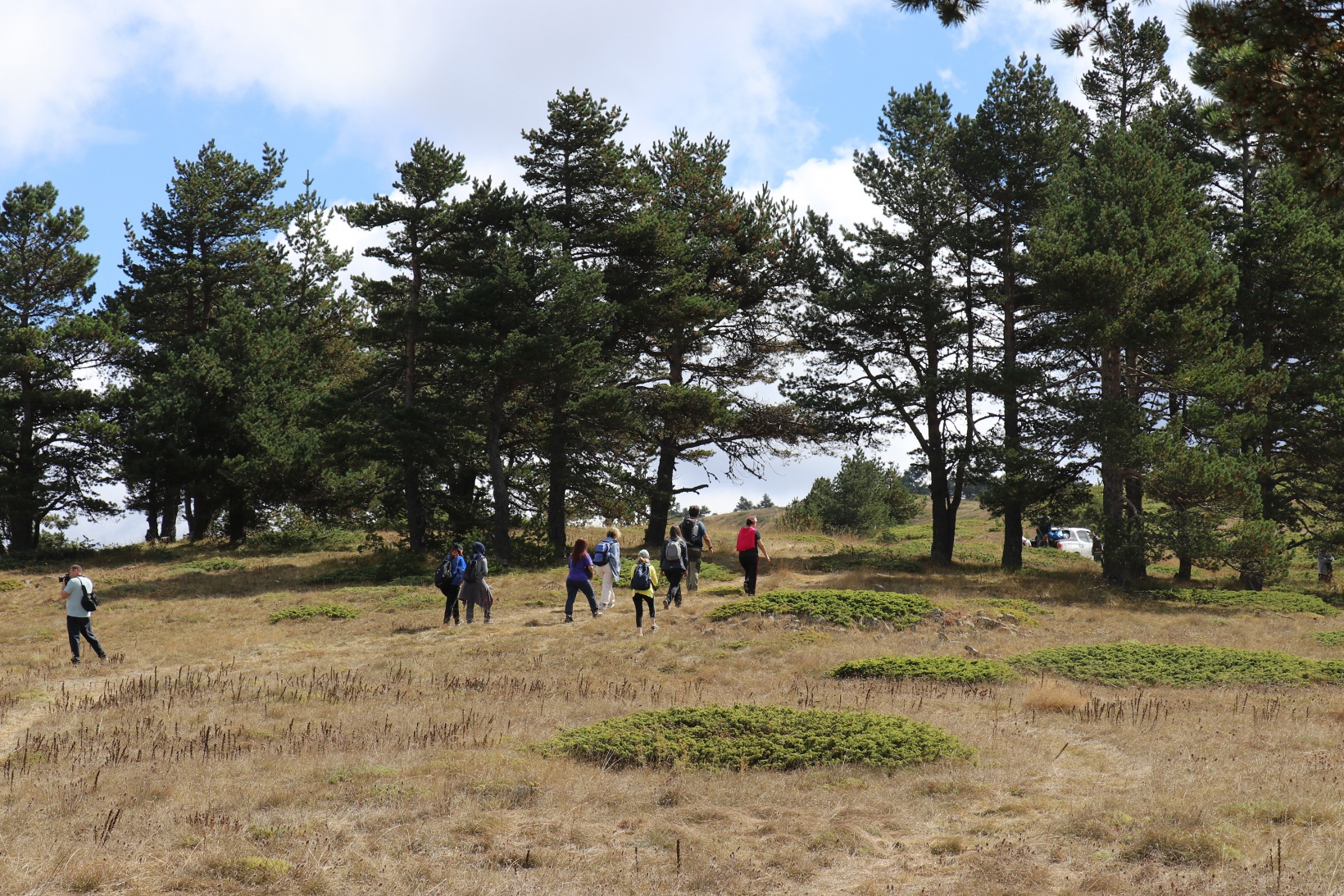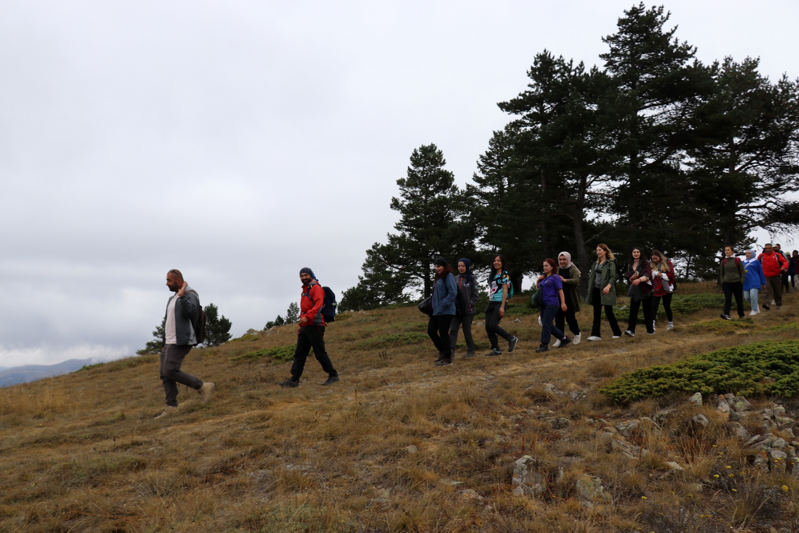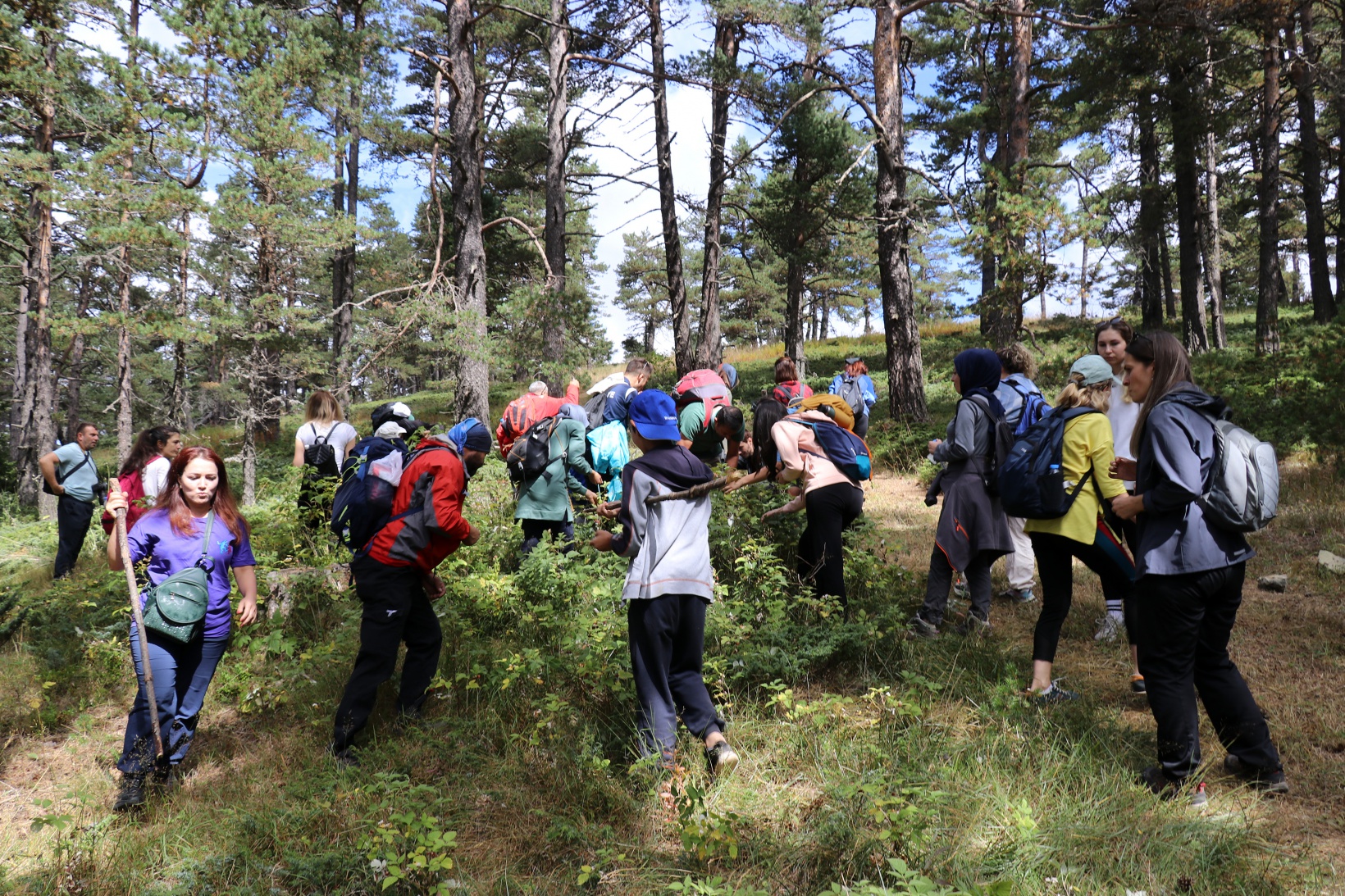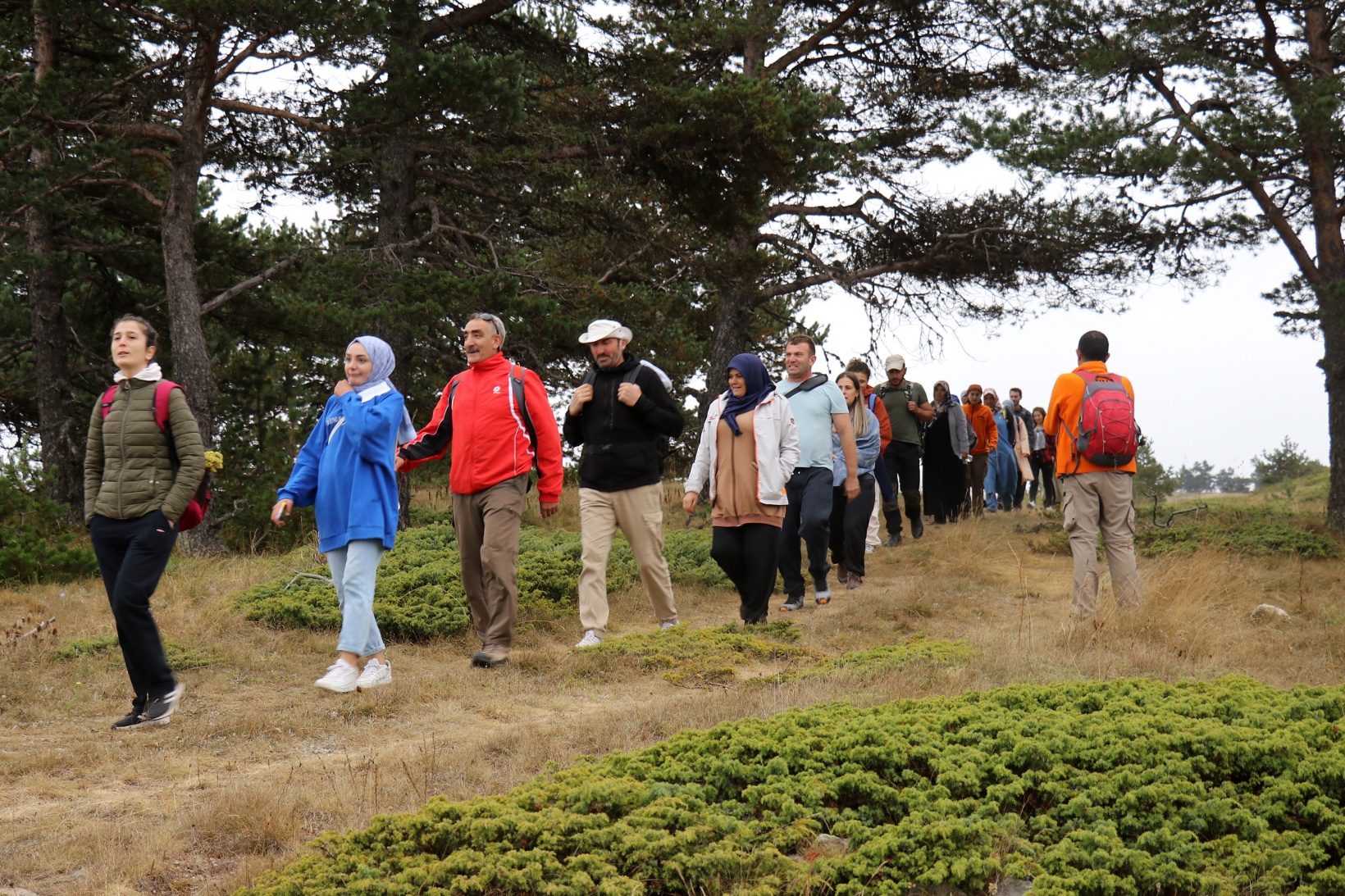 Torul ilçesine bağlı Harmancık köyü sınırlarındaki Godanas Ormanları dört yol mevkiine araçlarıyla ulaşan 38 doğasever buradan çam ağaçlarının kokusu arasında yürüyüşlerine başladı.