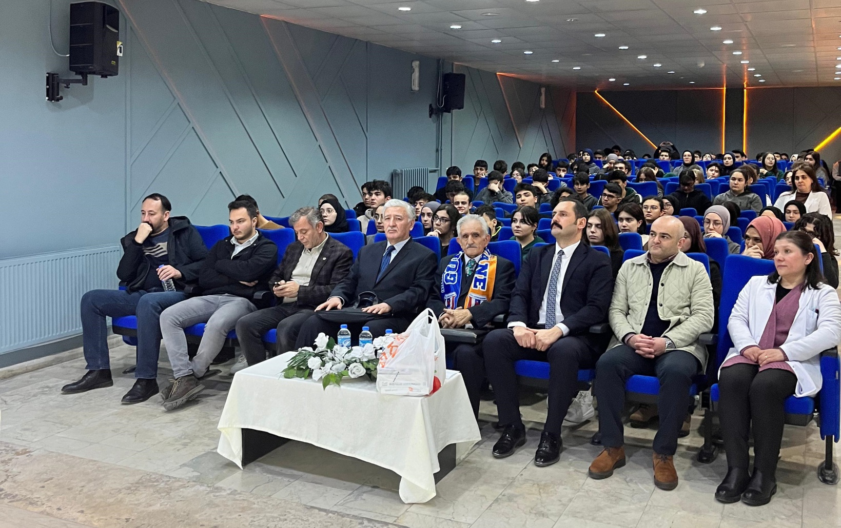 İki saatten fazla süren programa okulun 9. ve 11. Sınıf öğrencileri katılırken emekli Milli Eğitim Müdürü Gazeteci Yazar Yusuf Sadık, öğrencilere öğretmenlik tecrübelerini anlatırken, yazdığı kitapları ve Gümüşhanespor atkısını hediye etti.