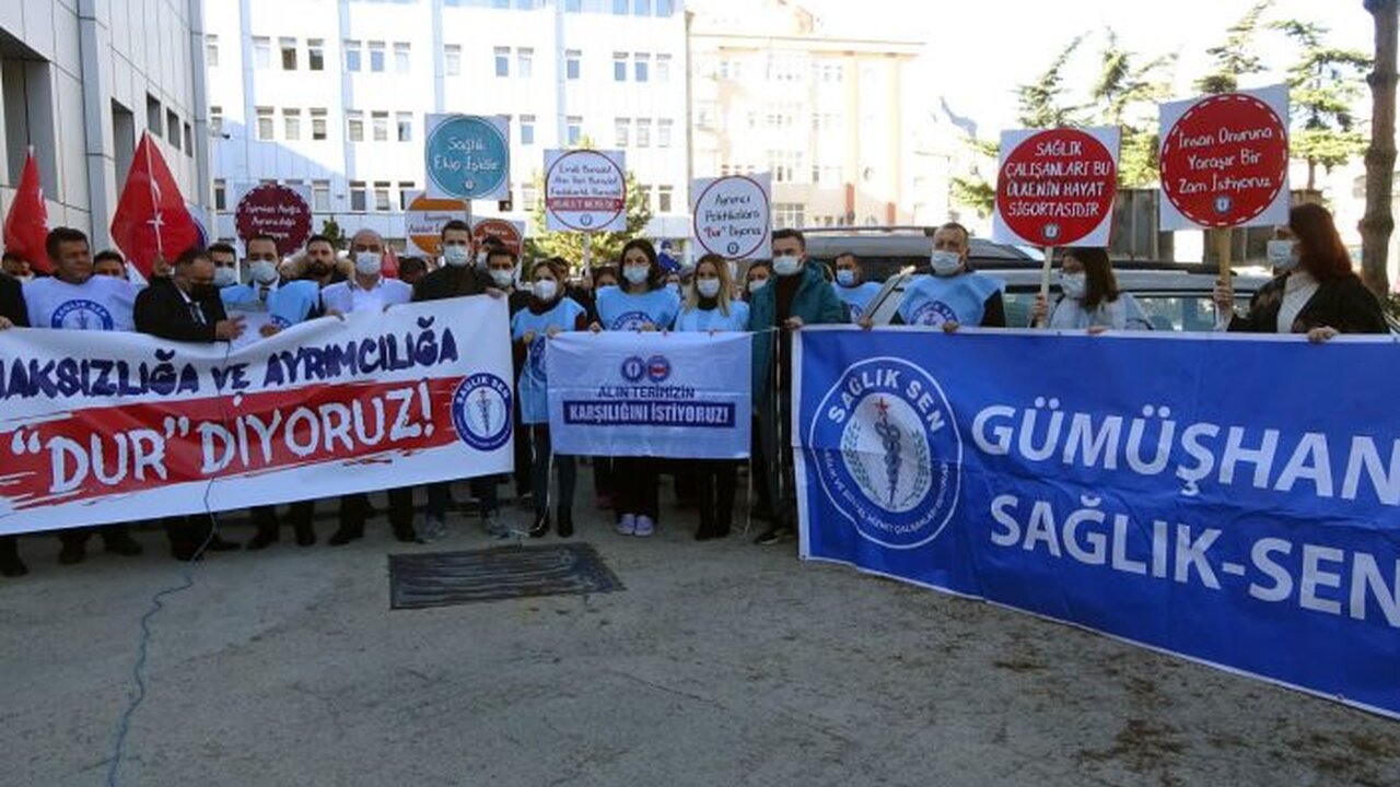 Kritik olmayan noktalarda görev alan sağlık personelleri iş bırakırken Gümüşhane Devlet Hastanesi bahçesinde basın açıklaması düzenlendi.