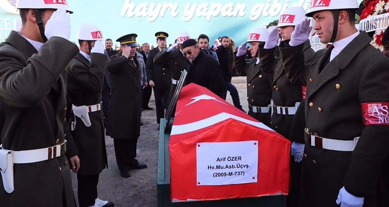 Görevi başında geçirdiği beyin kanaması sonucu tedavi gördüğü hastanede yaşamını yitiren Astsubay Üstçavuş Arif Özer, memleketi Gümüşhane’nin Kelkit ilçesinin Kaş köyünde toprağa verildi.