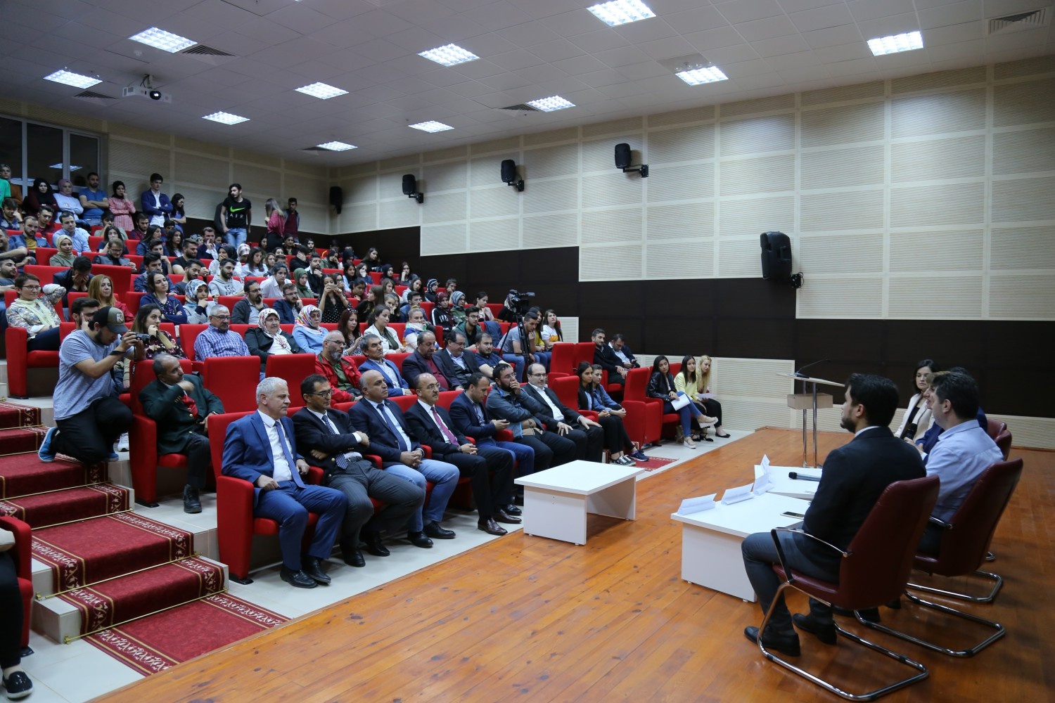 Rektör Zeybek’in konuşmalarının ardından film gösterimine geçildi. Sonrasında da filmi çeken öğretim elemanları ile söyleşi gerçekleştirildi.