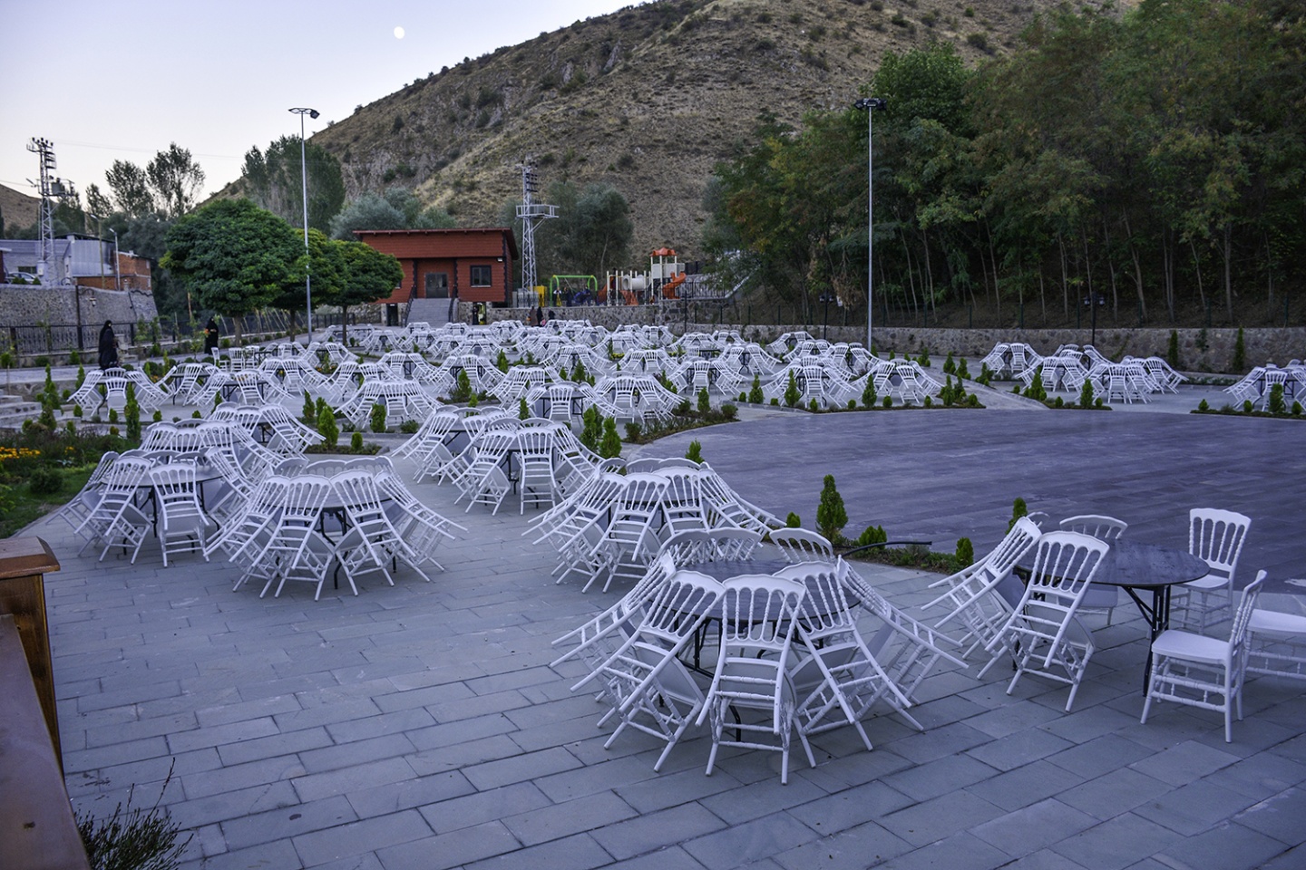 Tesisi 4 başlıkta ele aldıklarını kaydeden Çimen, “Girişte ki ilk alan bizim sosyal etkinlik alanımız. Burada düğünlerimizi, toplu etkinliklerimizi burada yapabiliriz. Yaklaşık 500 kişinin oturup yemek yiyebileceği, en az 2 bin kişinin ayakta etkinliğe katılabileceği alan oldu. Bunun içerisinde çocuk parkları, mutfağı, wcleriyle çok modern bir alan oldu” dedi.
