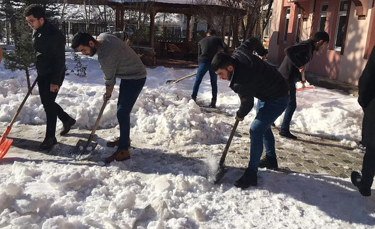 Okul bahçesindeki karları elbirliği ile temizledikten sonra kendi imkânları dâhilinde kullanılmayan plastik boruları boyayarak yaptıkları mama kaplarını bahçede belirli bölgelere yerleştiren öğrenciler, sokak hayvanlarının barınma ve beslenme ihtiyaçlarını karşılıyor.