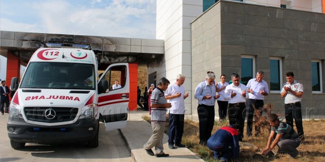 Konuşmaların ardından ambulans hastaneye teslim edilirken birde kurban kesildi.