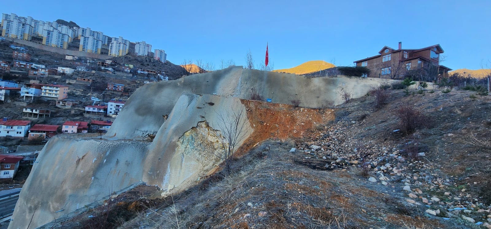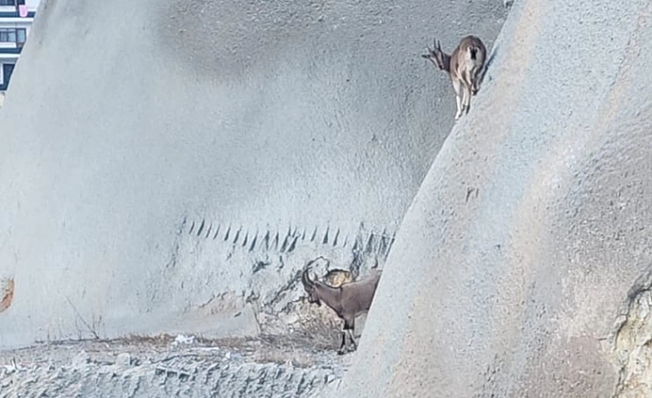 Sokak köpeklerinin peşlerine düşmesinin ardından dağlık alana doğru kaçmak isteyen yaban keçileri, tüneller bölgesi üzerindeki düz duvarlarda mahsur kaldı.