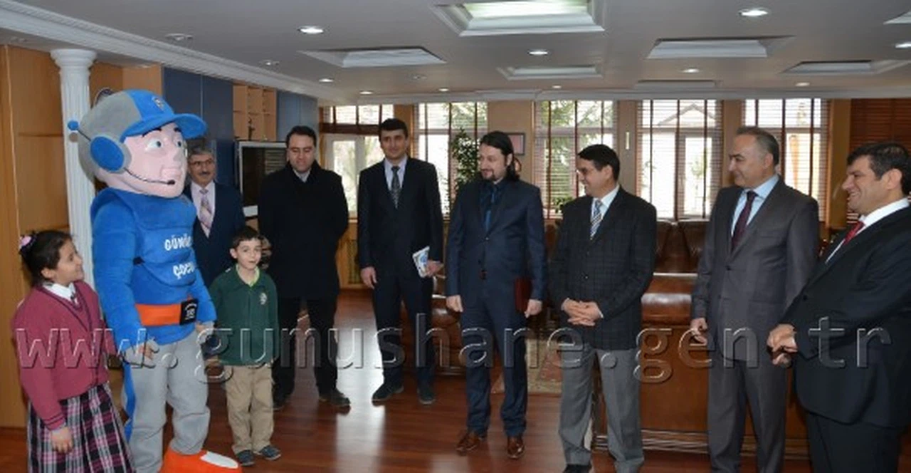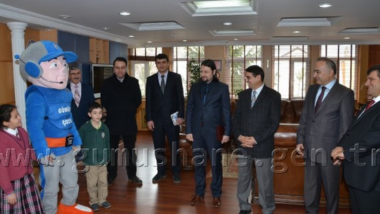 ‘Gümüş Çocuk, Gümüşhane'de yaşayan her çocuğun arkadaşı, sırdaşı, kardeşidir’ sloganı ile yürütülecek proje nedeniyle Emniyet Teşkilatı Vali Dr. Yusuf Mayda’yı makamında ziyaret etti.